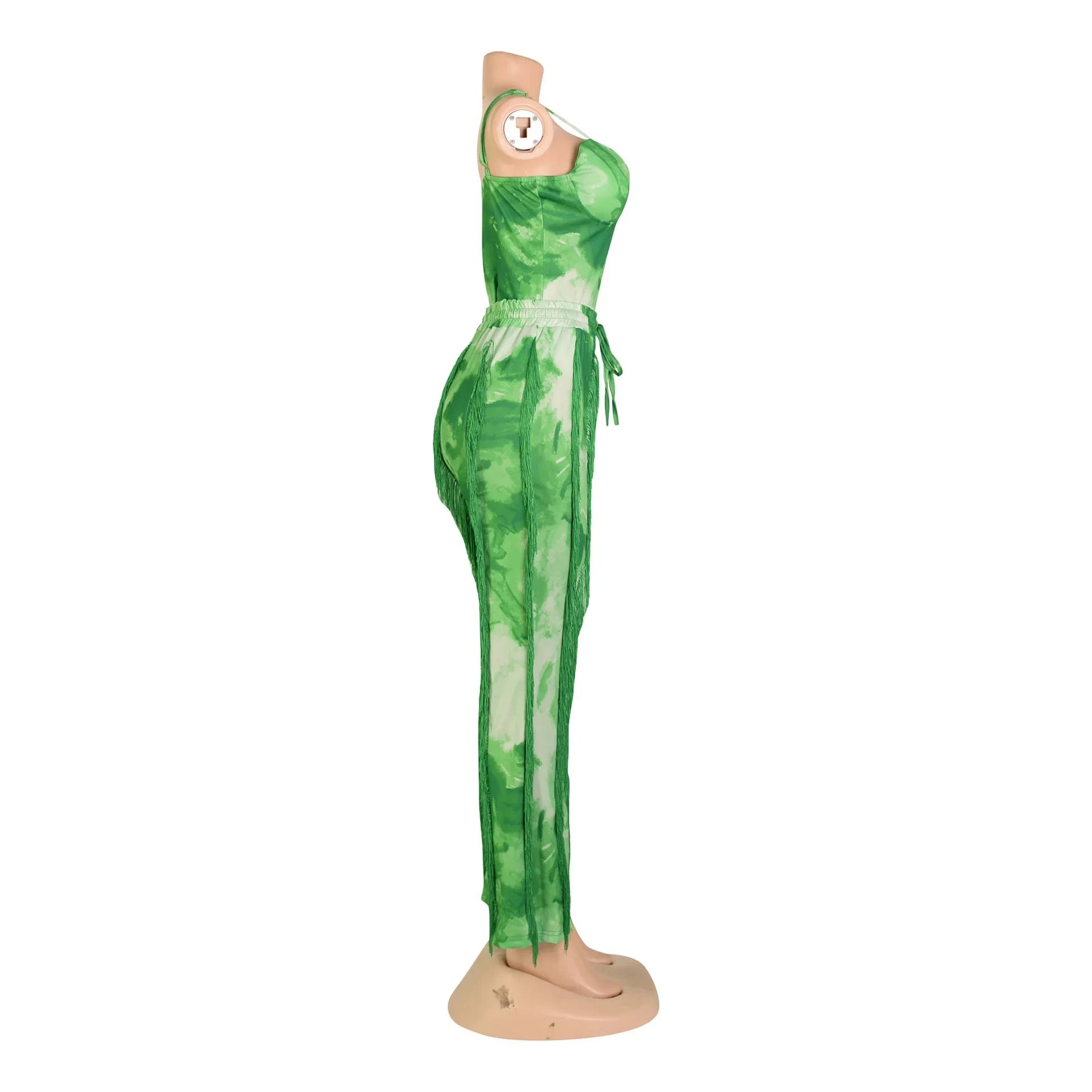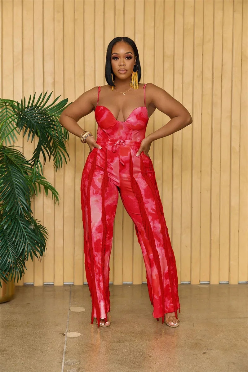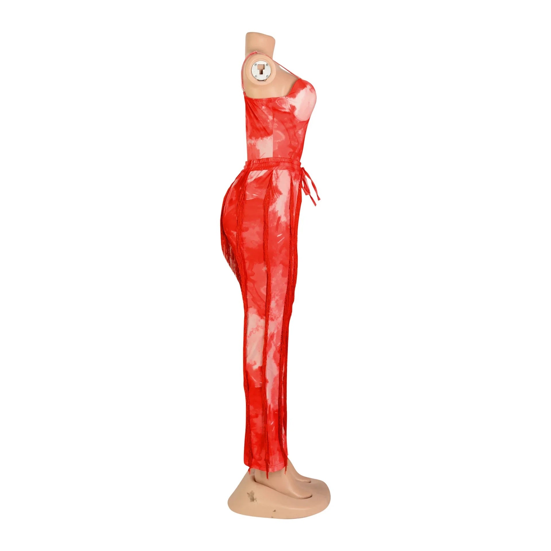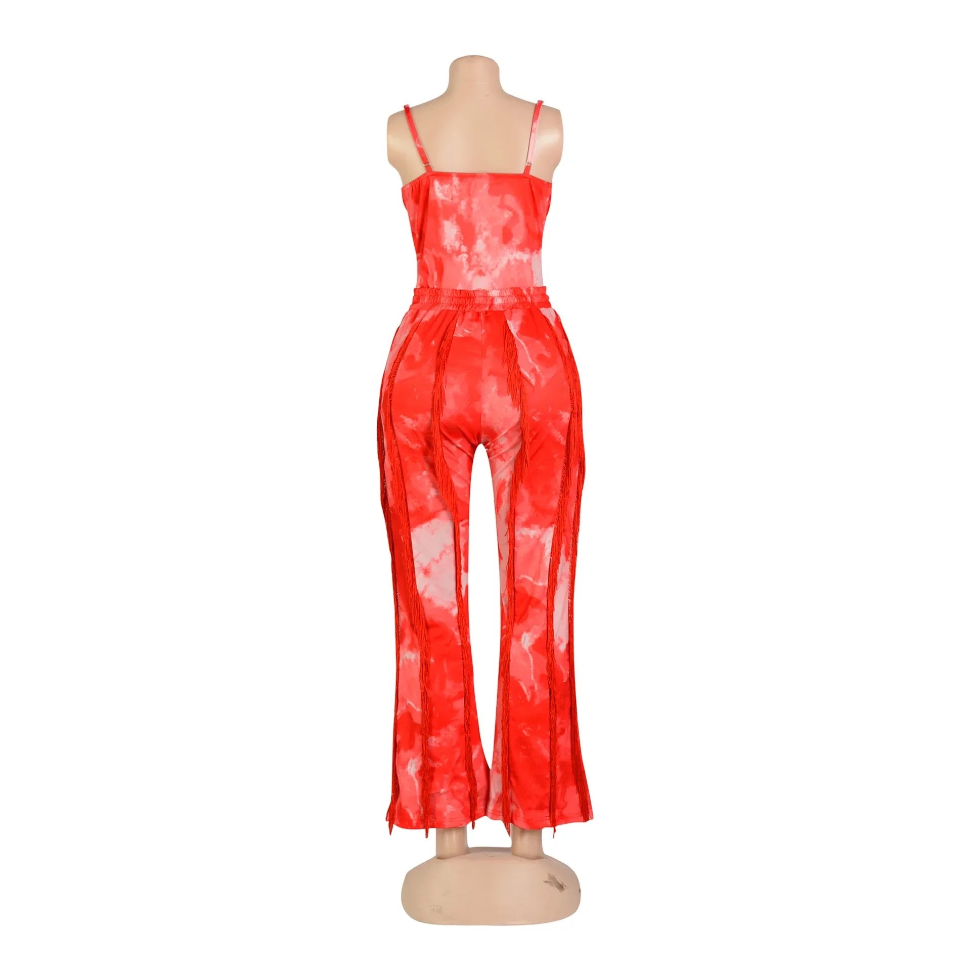 Create a look no one will forget this season with this Excuse Me Come Again Tie Dye Pants Two Piece Set. This two piece pants set is brought to you in a tie dye PU stretch material with a bodysuit and high waisted tassel design pants. how could you resist? Complete the look and style this set with sandals and accessories for a vibe like no other.