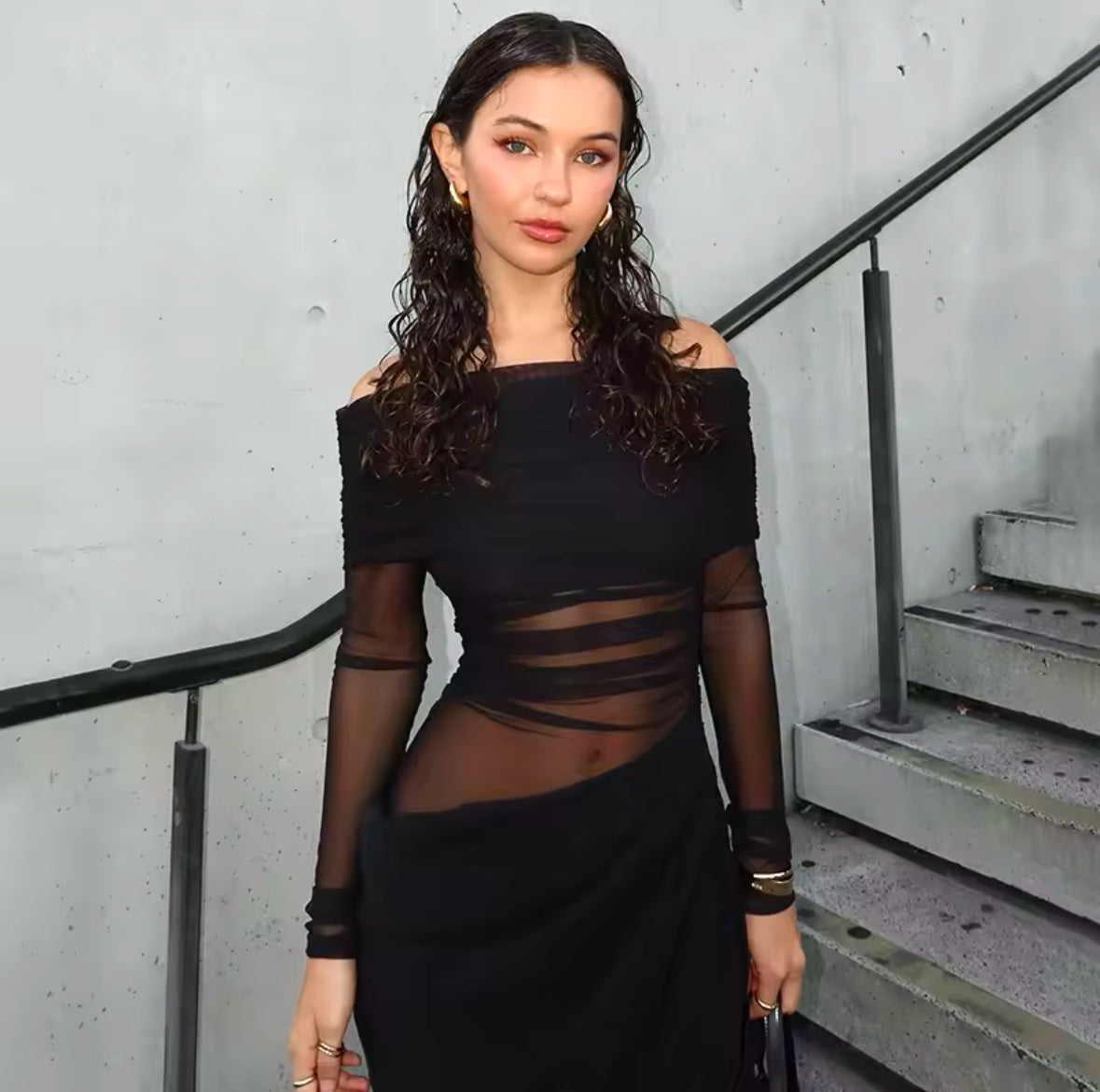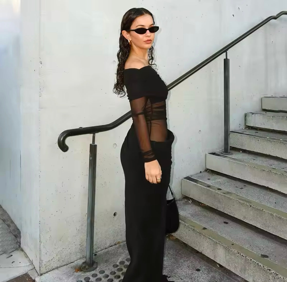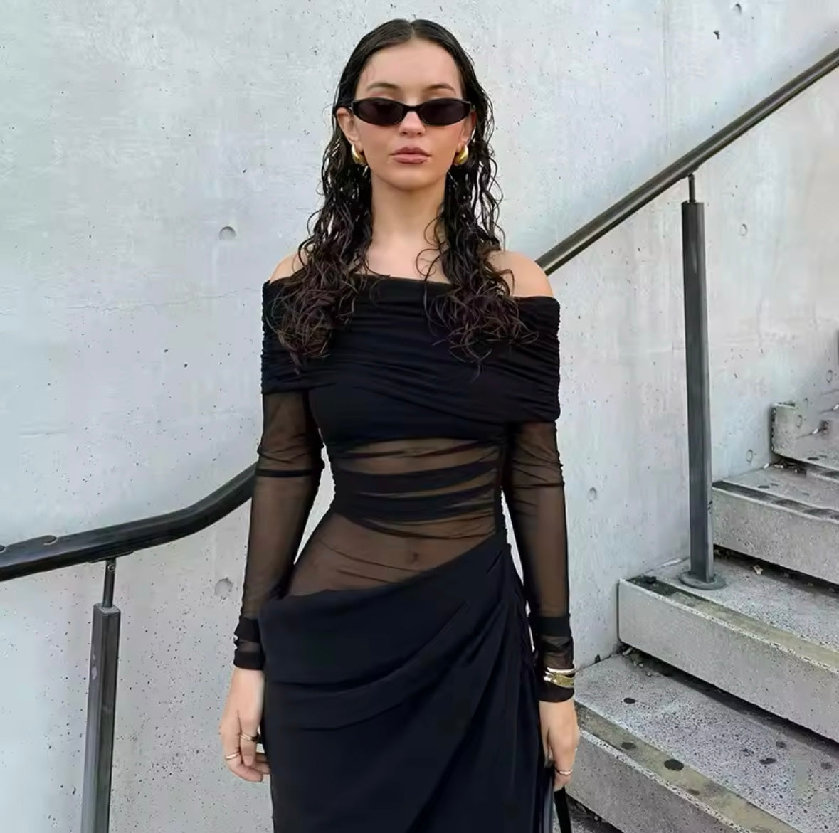 Found some last-minute weekend plans and need an unreal 'fit? Then we have you covered with this Eyes On Me Mesh Maxi Dress. a tall black off the shoulder detail maxi dress. With a black mesh material and a long sleeve design. we're obsessed. Work your styling techniques and add black high heels and accessories for a weekend-worthy finish that will gain all the likes!