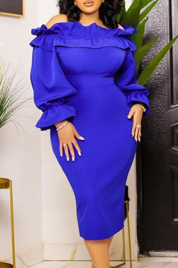 We're glad you've clicked on our new evening wear dress as we're really into its elegant vibes! The slash neck and long sleeve cut make this a great choice for any stylish girl.