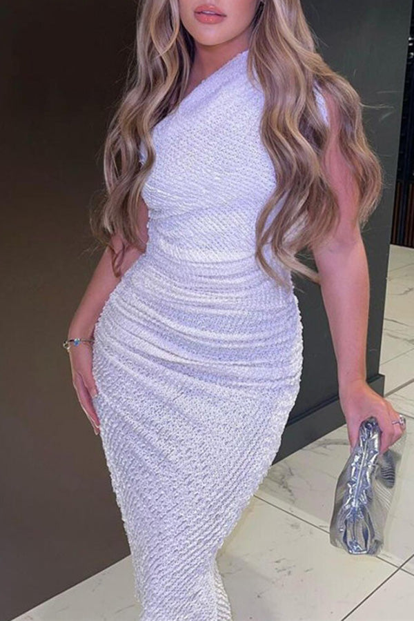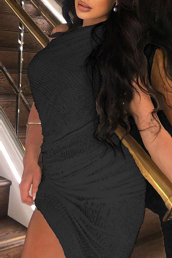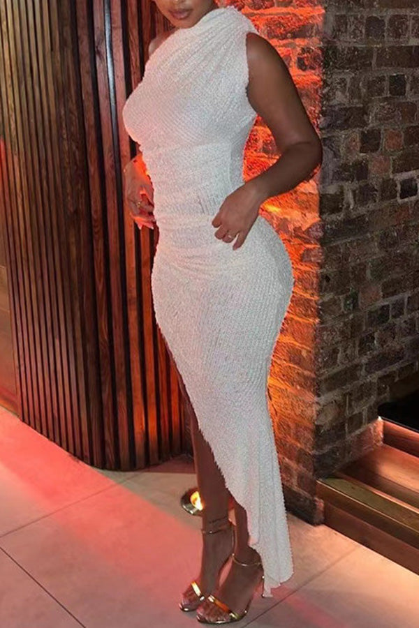 We're glad you've clicked on our new irregular dress as we're really into its elegant vibes! The one shoulder and sleeveless cut make this a great choice for any stylish girl.
