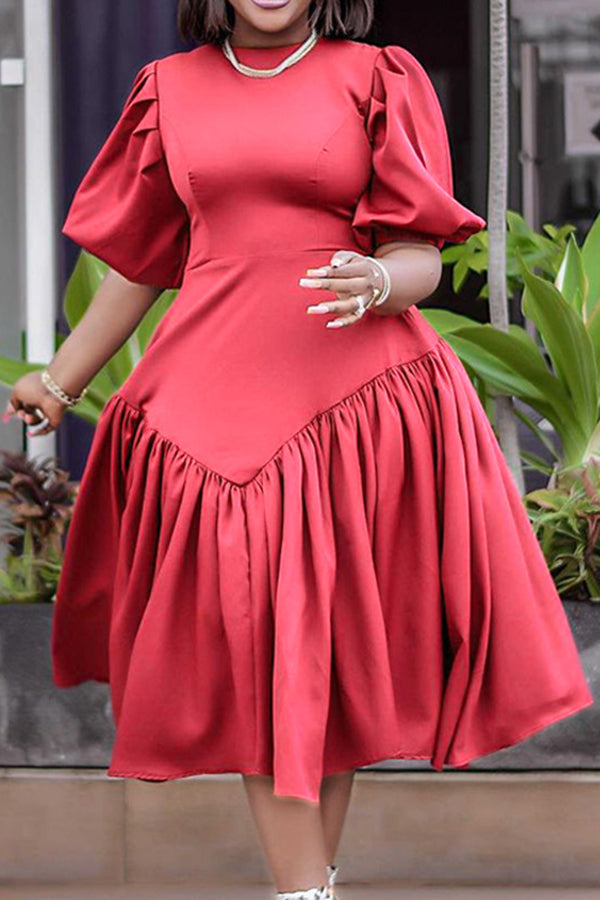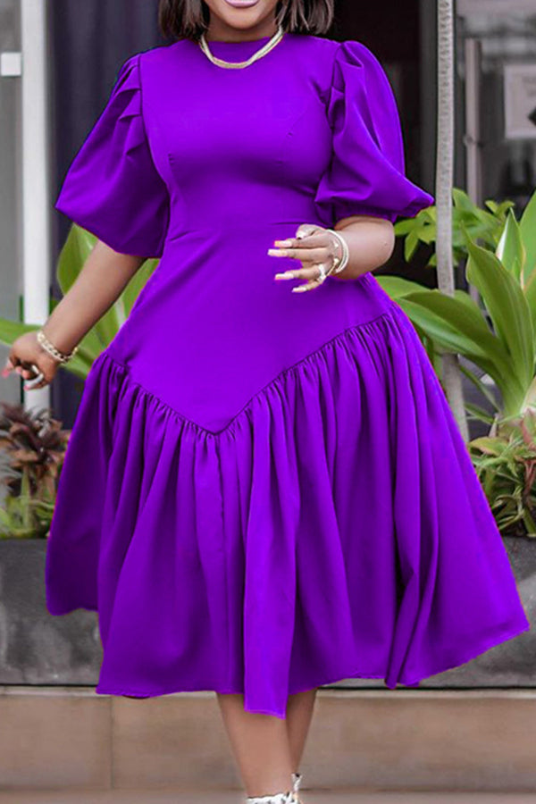 We're glad you've clicked on our new evening wear dress as we're really into its elegant vibes! The round neck and half sleeve cut make this a great choice for any stylish girl.