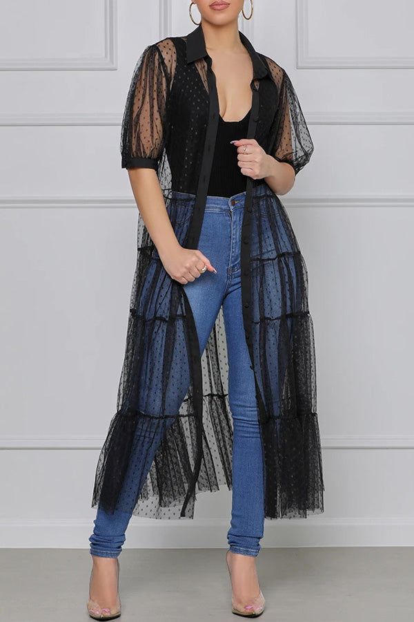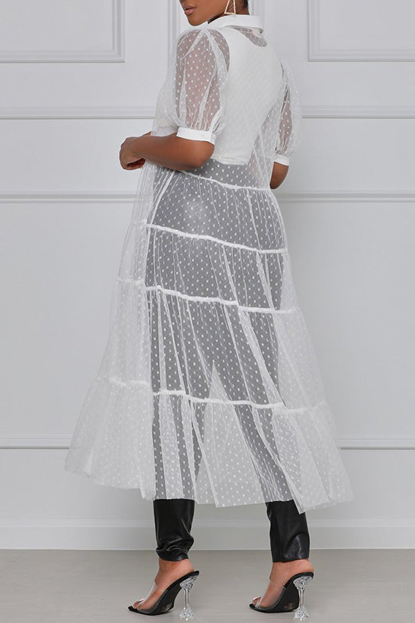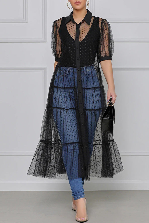 Stay on trend this season in our new sweet. lapel dress. We especially love the polka dot fabric and think this piece will be a new favorite in your closet!