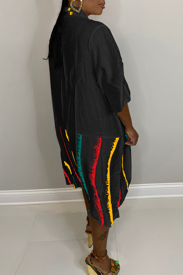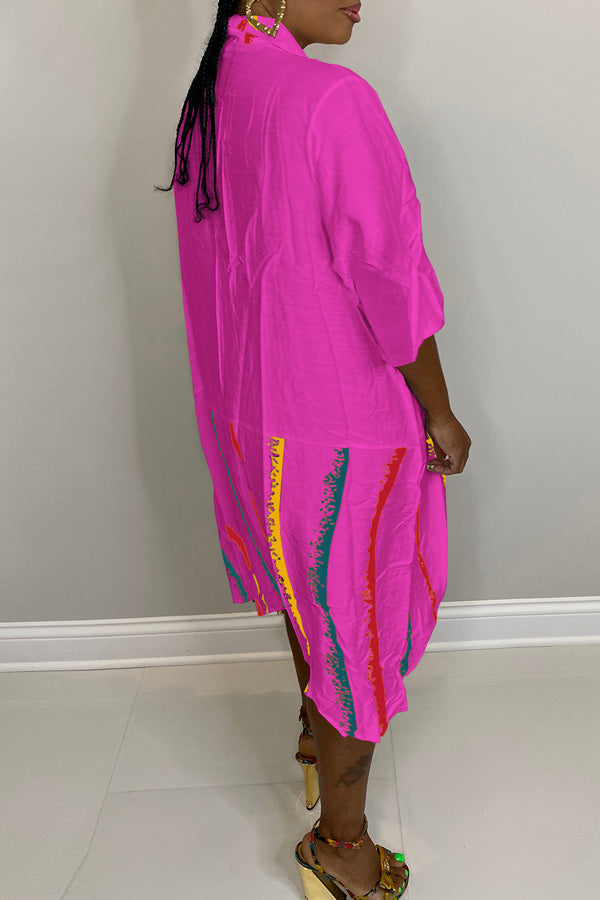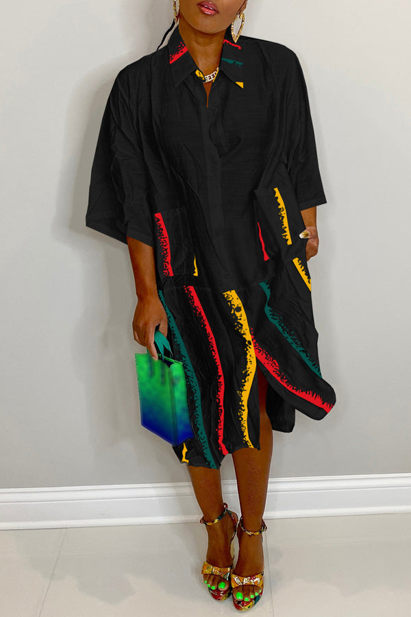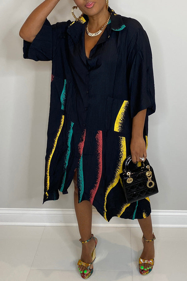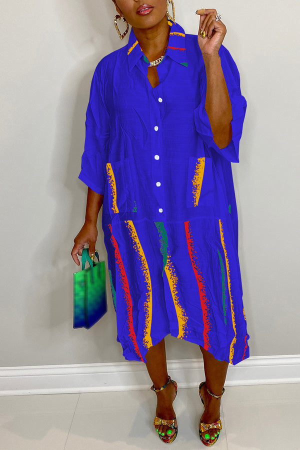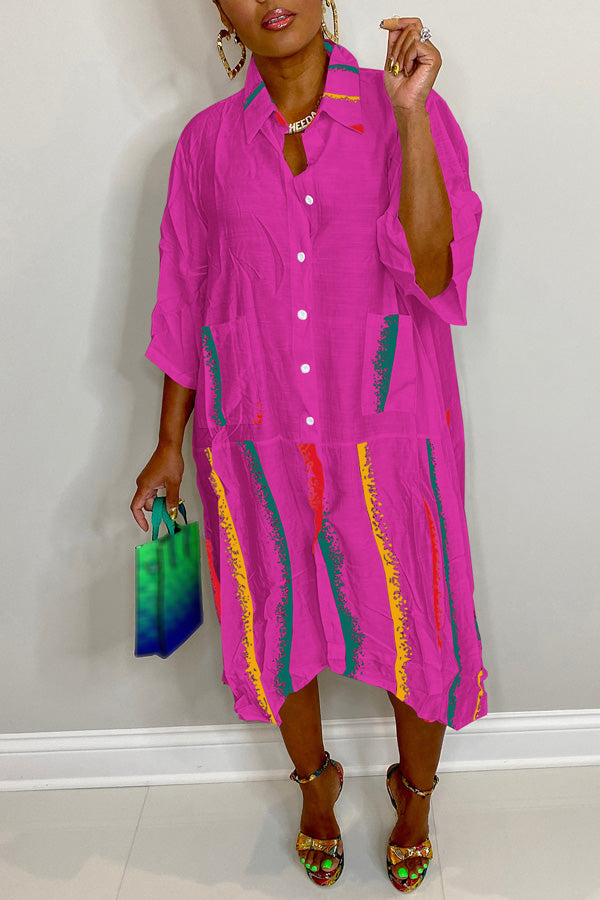 Stay on trend this season in our new stylish. lapel dress. We especially love the stripy fabric and think this piece will be a new favorite in your closet!