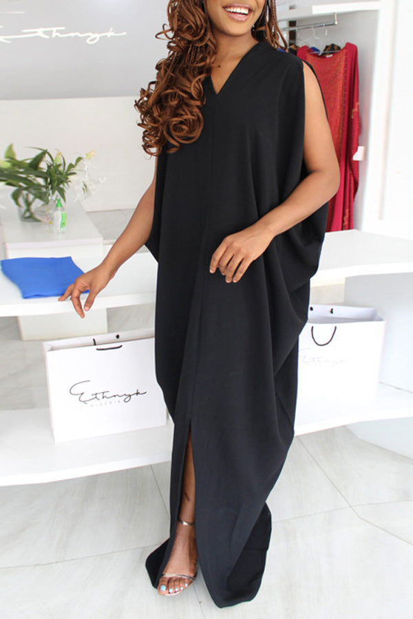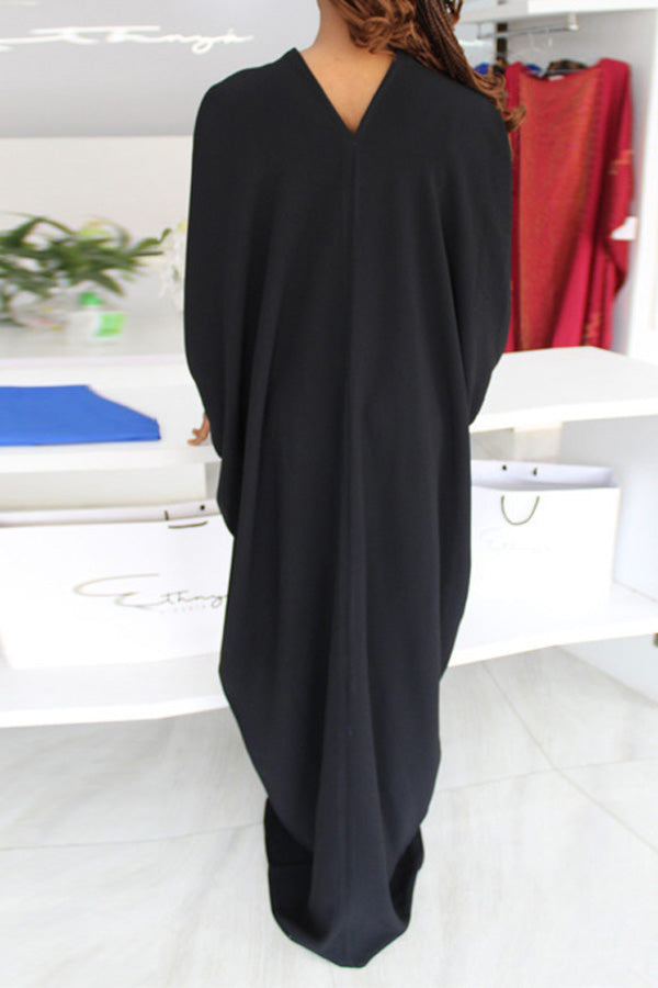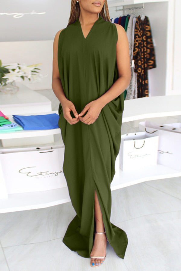 Stay on trend this season in our new elegant. v neck dress. We especially love the solid color fabric and think this piece will be a new favorite in your closet!