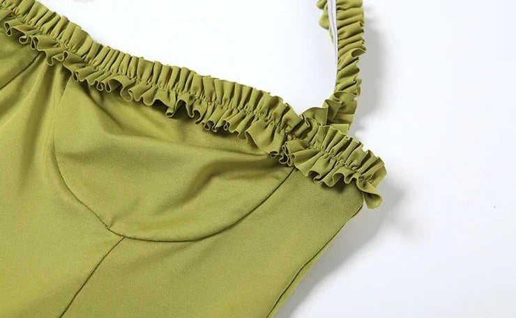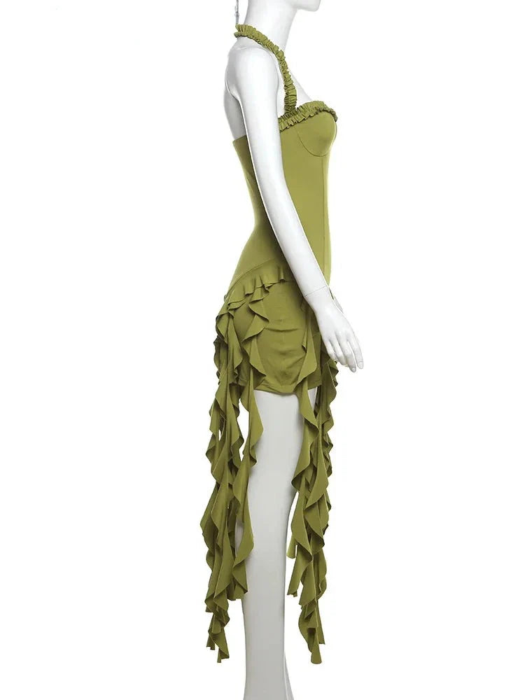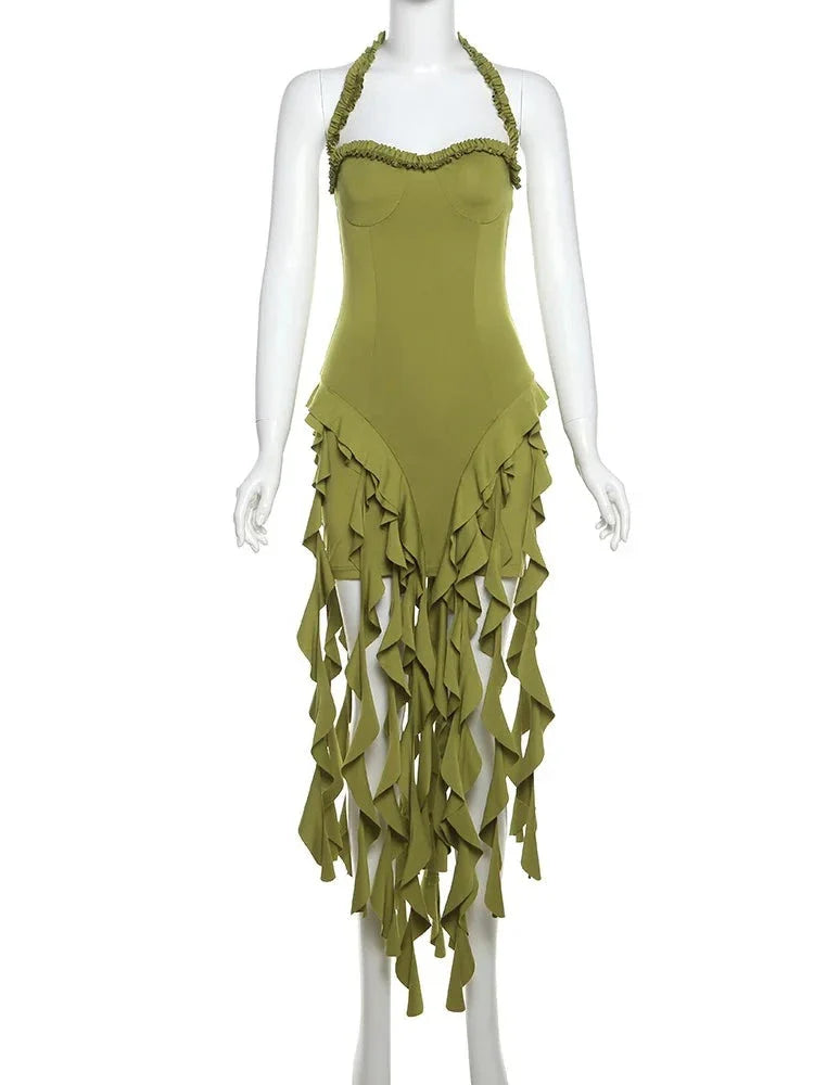 Looking for the perfect occasion 'fit? Look no further than this Feel The Breeze Tassel Dress. Featuring a green material with a halter neckline. frill detailing and a midaxi length. you really can't go wrong with this dress. Just add your highest heels and statement accessories for a flawless finishing touch.