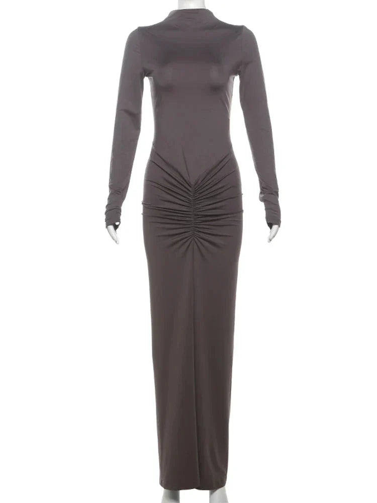 Switch up your everyday outfit of the day with this Feeling It Long Sleeve Maxi Dress. Its dark gray material is super easy to style and its ruched detailing is seriously flattering. This maxi dress also features an elevated neckline and long sleeves which is sure to add a chic touch to your everyday look. Team with heels and your favorite accessories for a fool-proof finish.