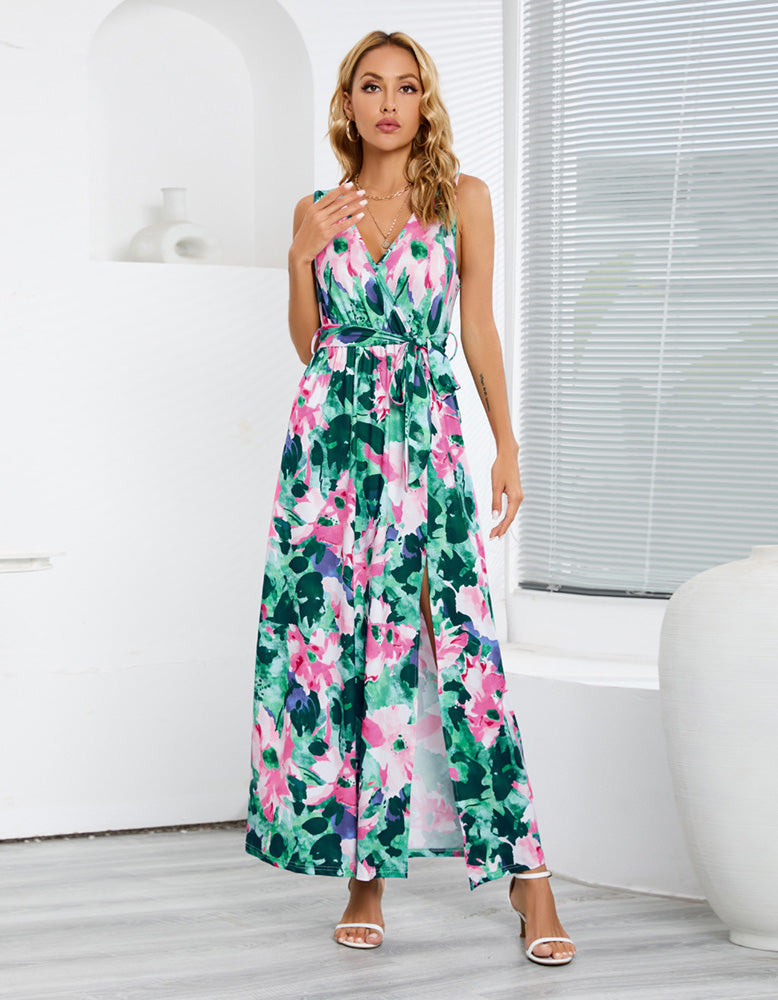 This stylish A Line dress features a bold floral pattern. midi waistline. and stylish slits for a breezy look. Crafted from mild-stretch Polyester fabric. it's available in Red. Blue. and Green and is perfect for an elegant yet boho chic look. The flounce hemline and neckline straps add a comfy and fashionable finish.