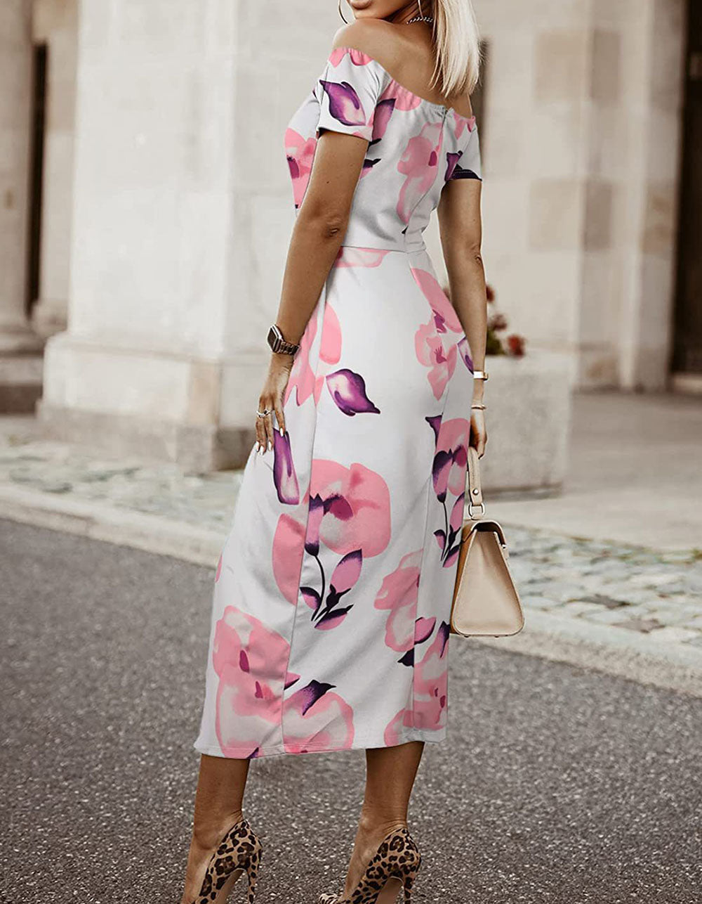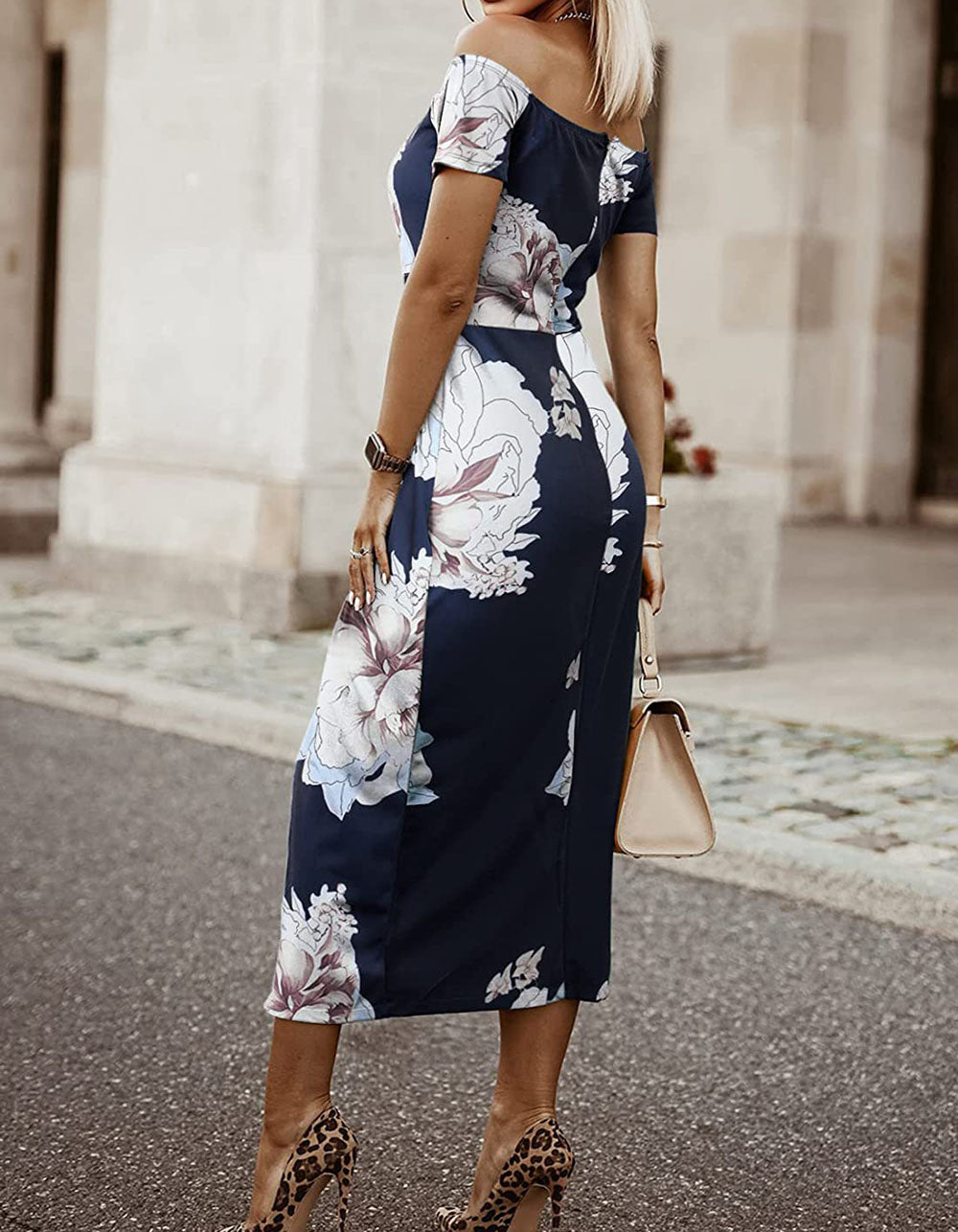 This Floral Print Slits Off Shoulder Party Bodycon Dress is a stylish and versatile garment. Made from a cotton and polyester blend. it is lightweight. highly breathable. and stretches slightly to ensure a comfortable fit. It features an off-the-shoulder neckline. midi waist. pencil hem. and a long length. Available in an array of colors. this dress is perfect for any occasion. from elegant to party.