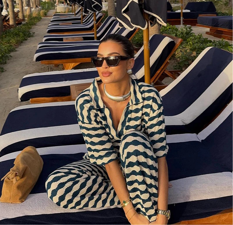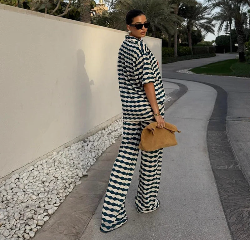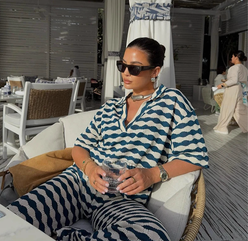 Wear this Fun Girl Stripe Two Piece Set for a relaxed yet stylish outfit. Crafted from a blue striped material. this two piece set features a short sleeve top and wide-leg design pants in a loose fit.