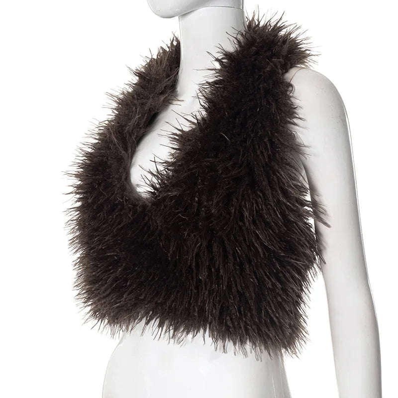 Stay stylish and warm this winter with our Fur Crop Vest Coat! Made with luxurious fur. this coat features an open back for a unique and fashionable look. Dress it up or down. this versatile piece will be a statement in any wardrobe. Order now and elevate your winter fashion game!