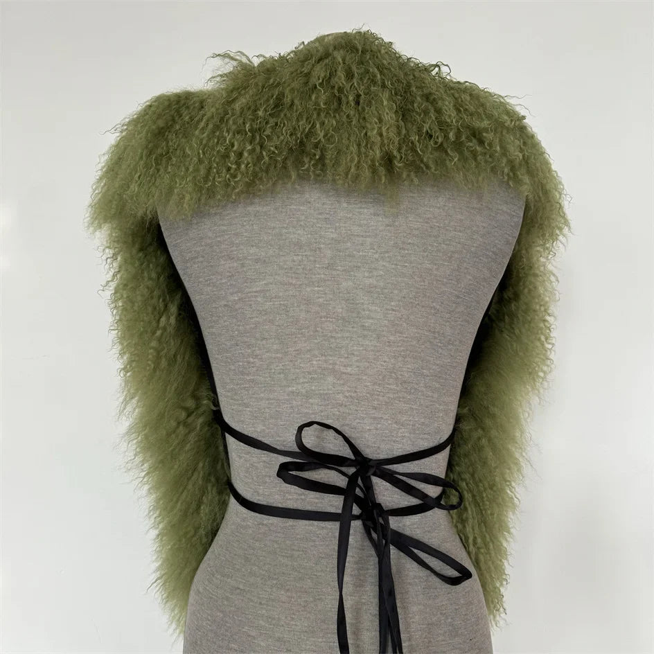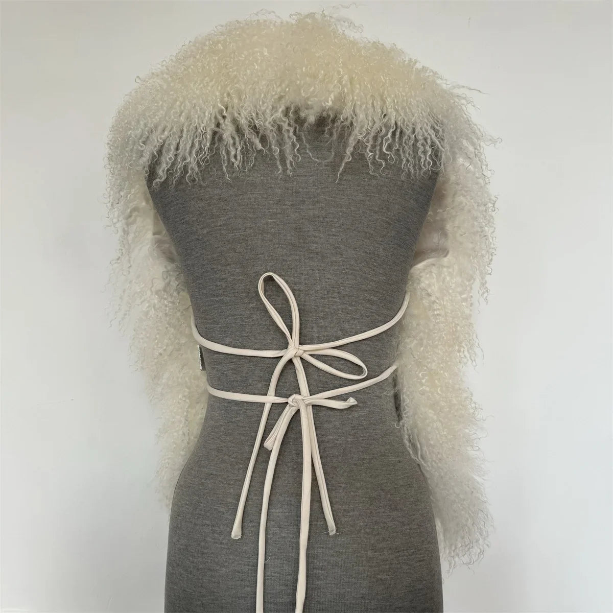 Stay warm and stylish this winter with our Fur Top Vest. The open back design adds a touch of sophistication. while the fur material ensures ultimate comfort. Perfect for any occasion. this must-have vest is a staple addition to your wardrobe.