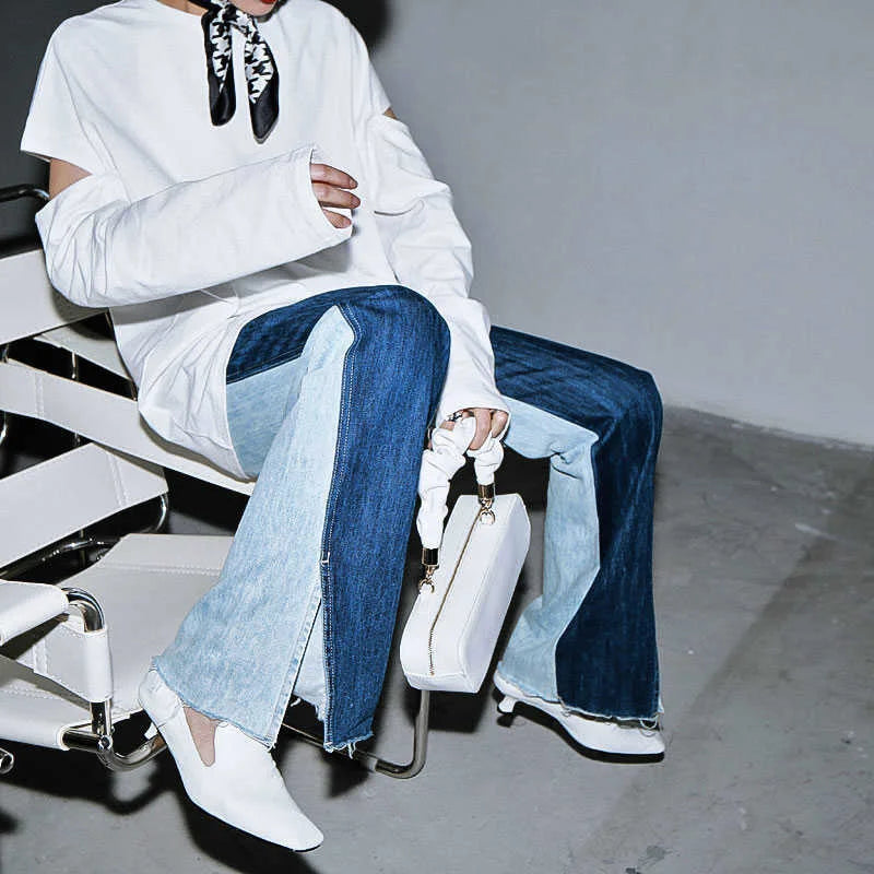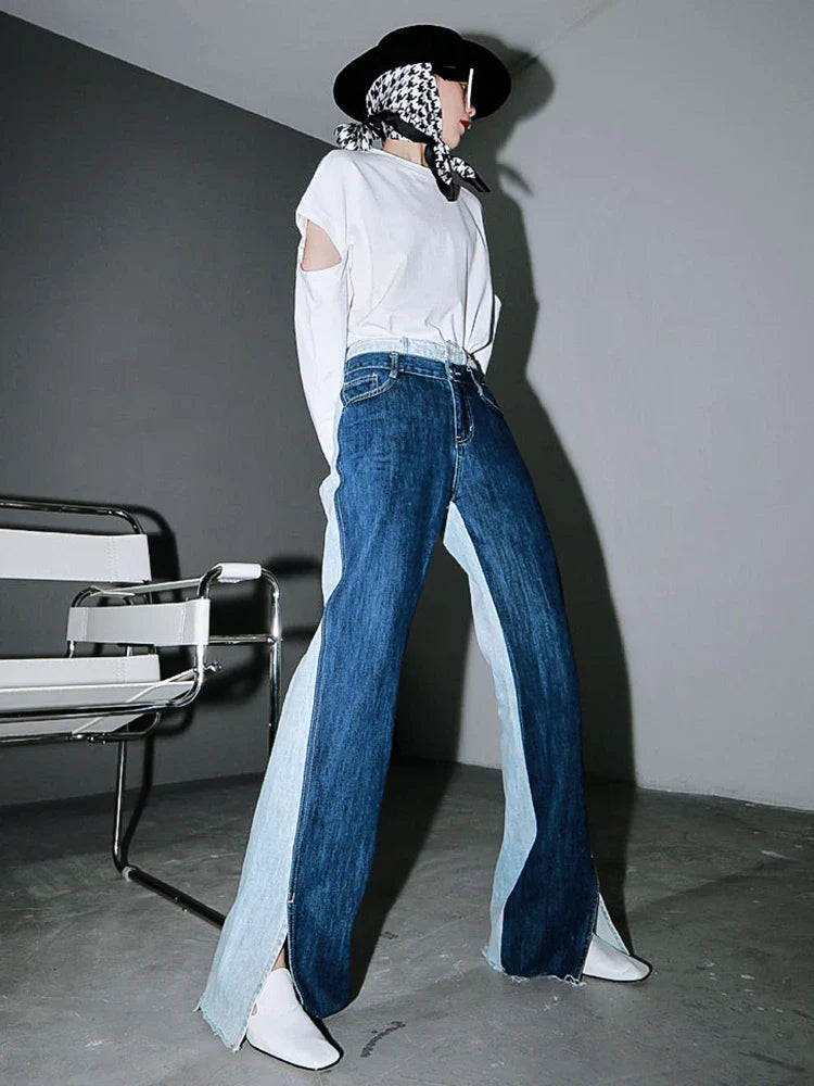 Steal all the stares in these must-have Catching Your Eye High Waisted Wide Leg Jeans. Featuring a light blue and dark blue washed denim material. front split hems and a long wide leg fit. we're obsessed. Style with boots and a button down top for an insta-worthy finish.