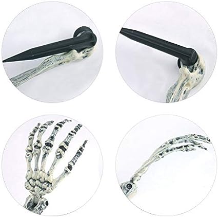 �Easy to set up - When placing this skeleton decoration. all you need to do is insert the arm posts into the ground. Then place the skull in between. The skeleton hands come with plastic posts that can be easily placed in your yard. lawn and garden.