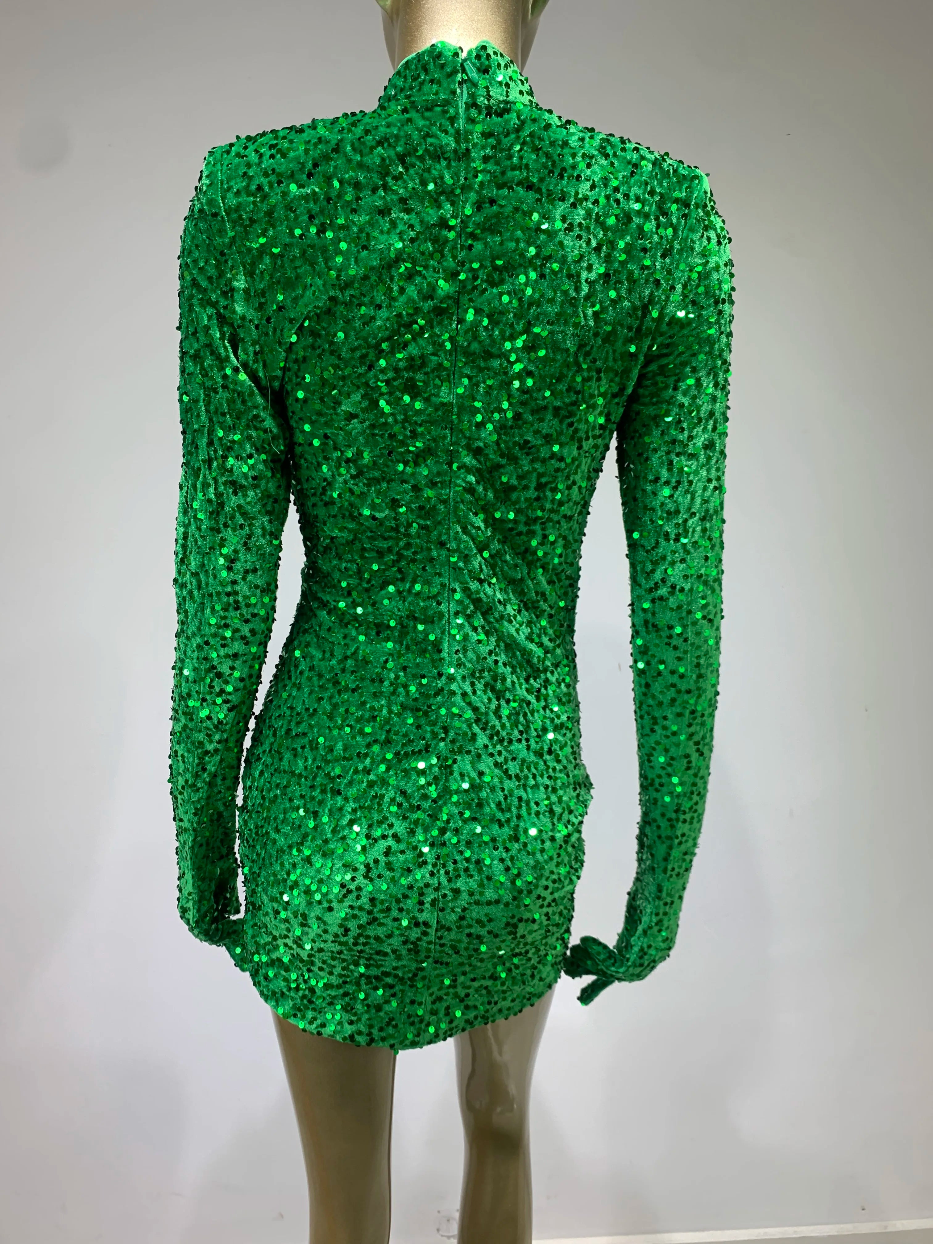 Indulge in luxury with our Green Sequins Mini Dress. Its classy design radiates sophistication and elegance. making it perfect for any special occasion. The iconic green sequins add the perfect touch of glamour. elevating your style to a whole new level. Make a statement and stand out with this exclusive piece.