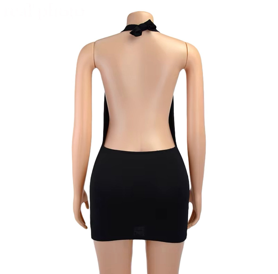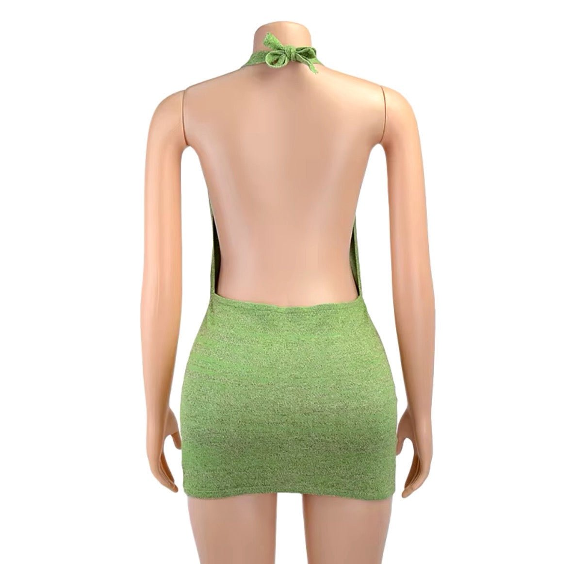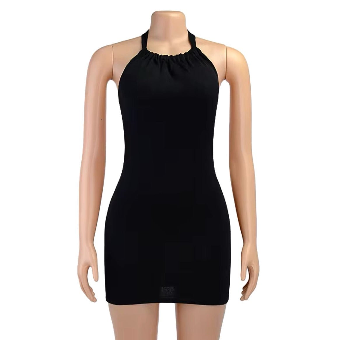 Dance the night away without a worry in the world in my Halter Backless Mini Dress. Made in a solid color cotton fabric. this flirty style features a wrap around the neck tie detailing with your back out. Keep the compliments coming all day and night long. Keep it simple with a dainty necklace and some cute heels.