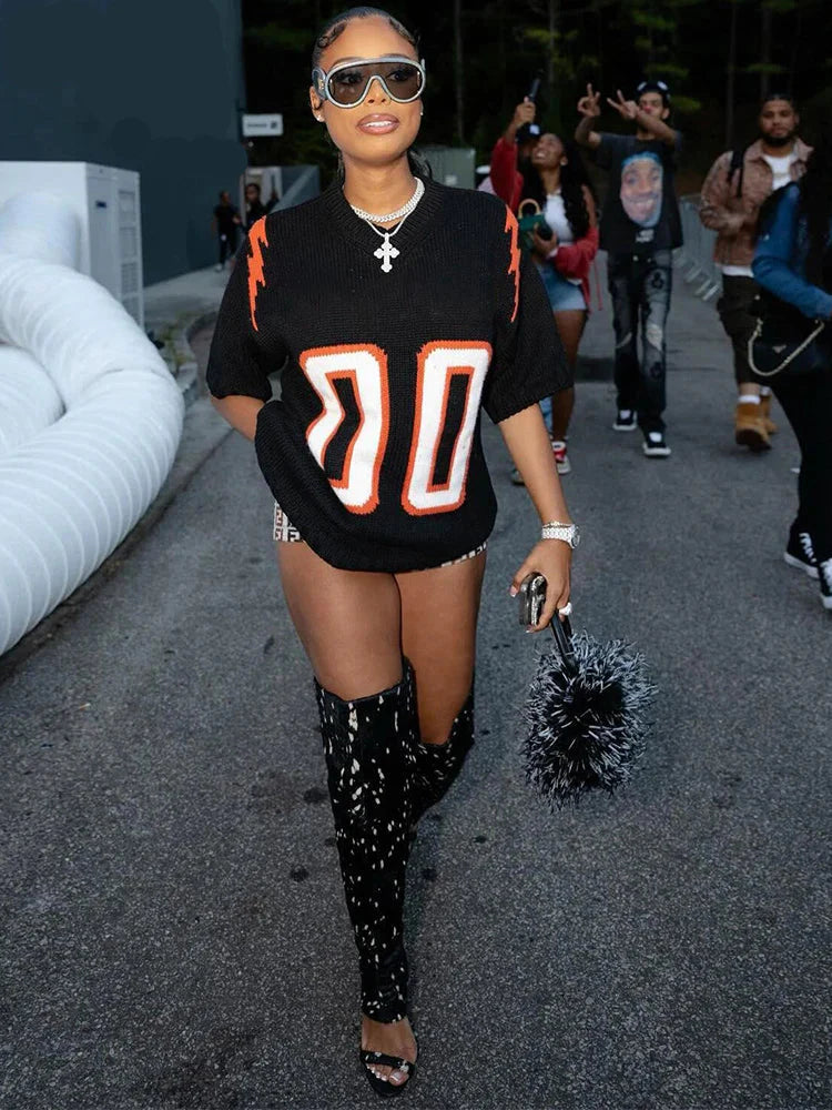 Elevate your sporty collection with this Here To Dominate Short Sleeve Sweater Top. Brought to you in a sweater hue. with a sporty oversized design. how can you not love? Simply style with shorts and knee length boots to finish off the look. It's a yes from us!
