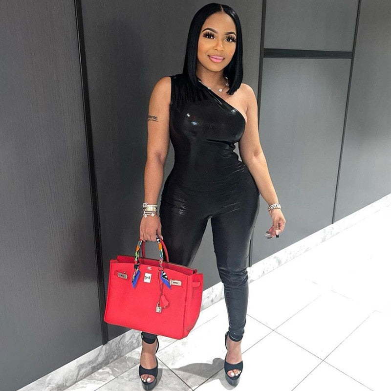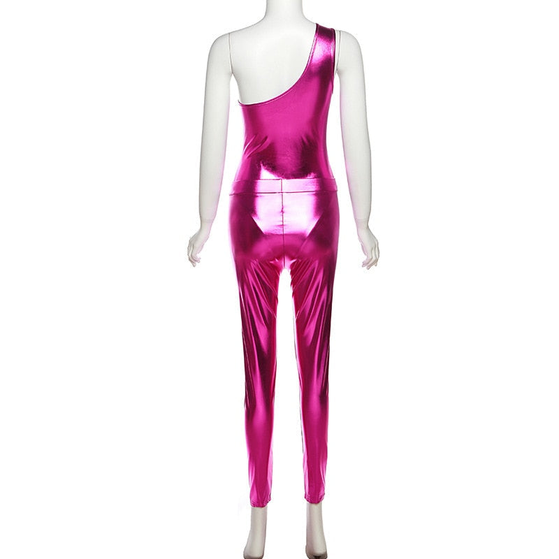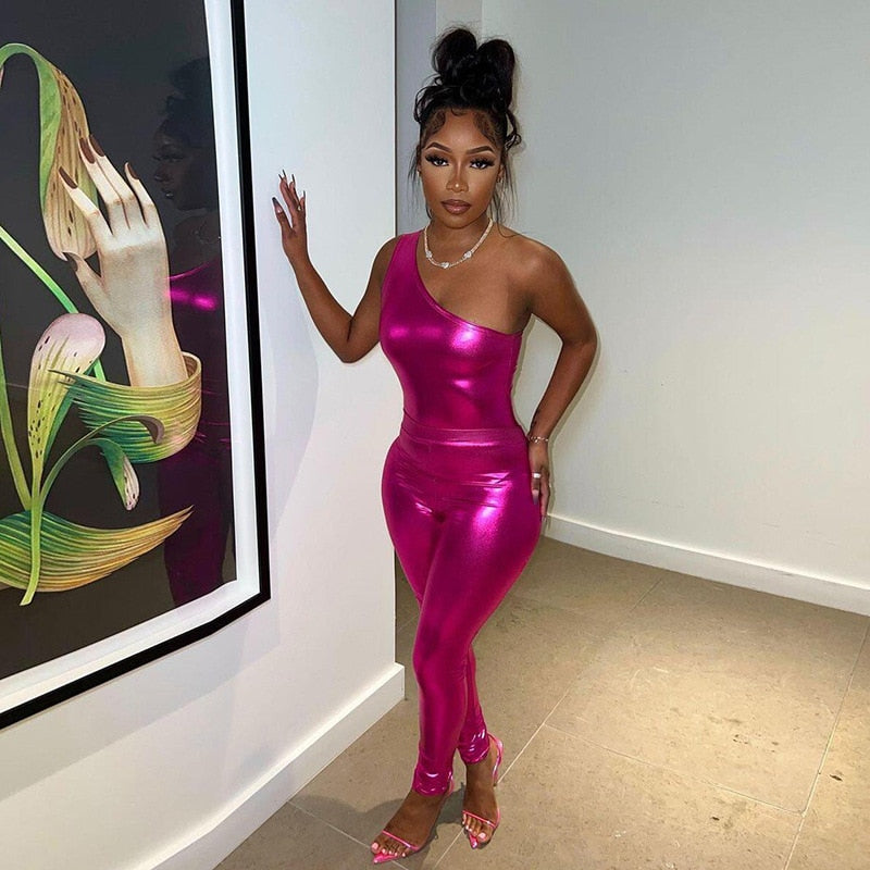 Take styling to a whole new level with this High Shine Two Piece Set. Featuring a high-shine material with a one shoulder bodysuit and matching high waisted leggings with a figure-flattering fit. what's not to love? Team with heels and minimal accessories for a combo like no other.