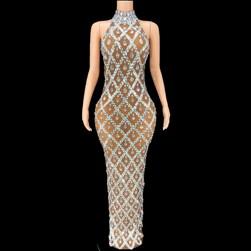 Look elegant in the I Like It Shiny Maxi Dress. perfect for special occasions like birthdays or celebrations. Crafted with a shiny fabric. tear drop diamonds this maxi dress features a Turtleneck neckline and sleeveless design for a classic and sophisticated look.