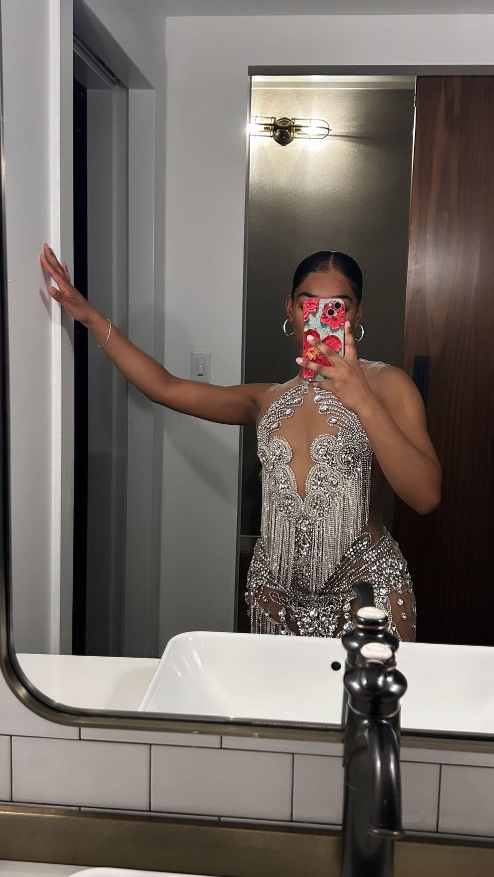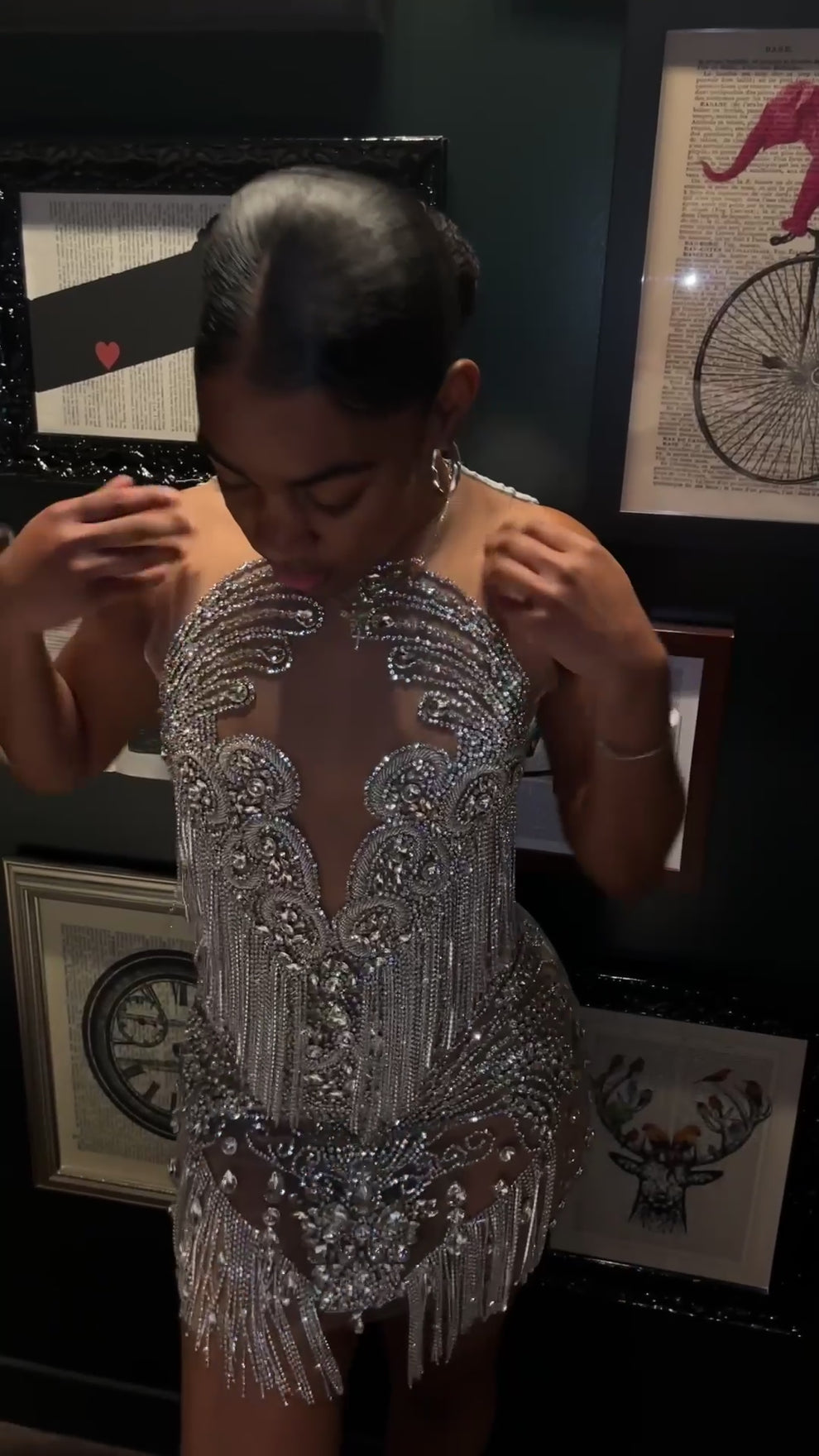 - Please take special care when handling products adorned with rhinestones and mesh. Do not pull on the dress. as these materials are delicate.