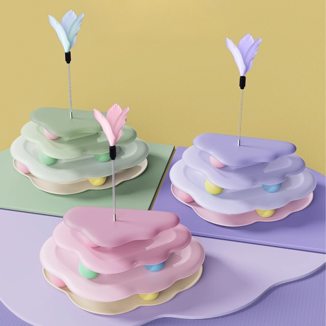 Experience endless amounts of fun with our Cloud Interactive Cat Ball Tracks Toys. Watch as your cat bats and chases the rolling balls along the tracks. providing both physical and mental stimulation. With three levels and nonskid pads for stability. multiple cats can join in on the excitement. Keep playtime engaging and entertaining for your furry friend.