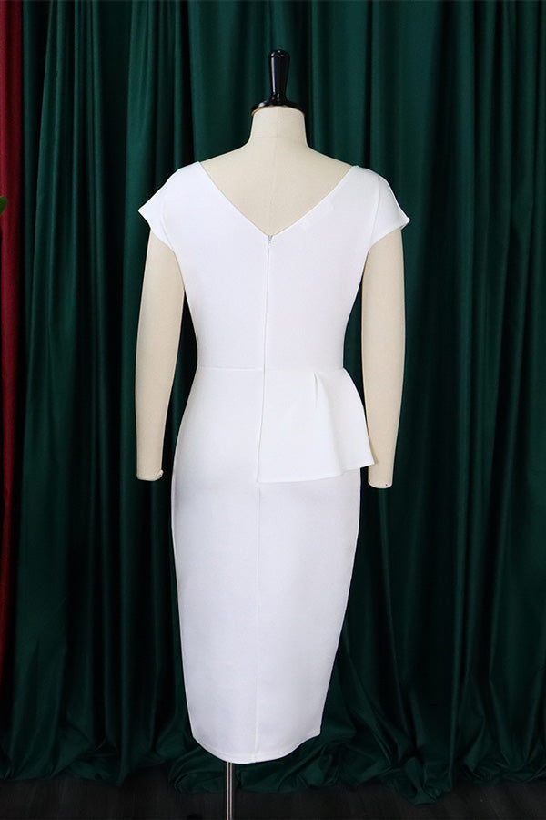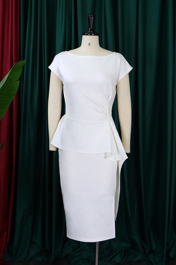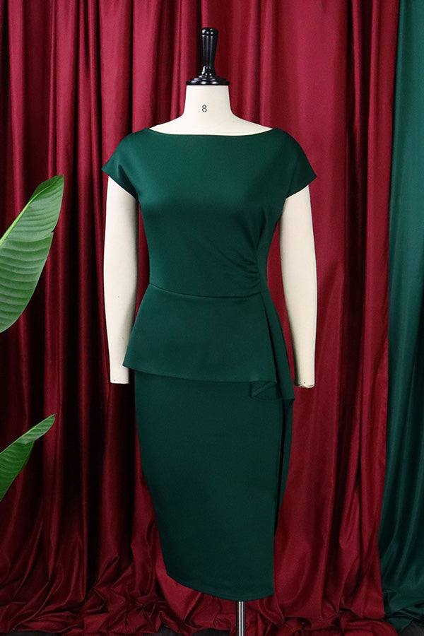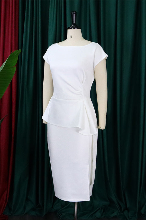 Stay on trend this season in our new elegant. slim fit dress. We especially love the solid color fabric and think this piece will be a new favorite in your closet!
