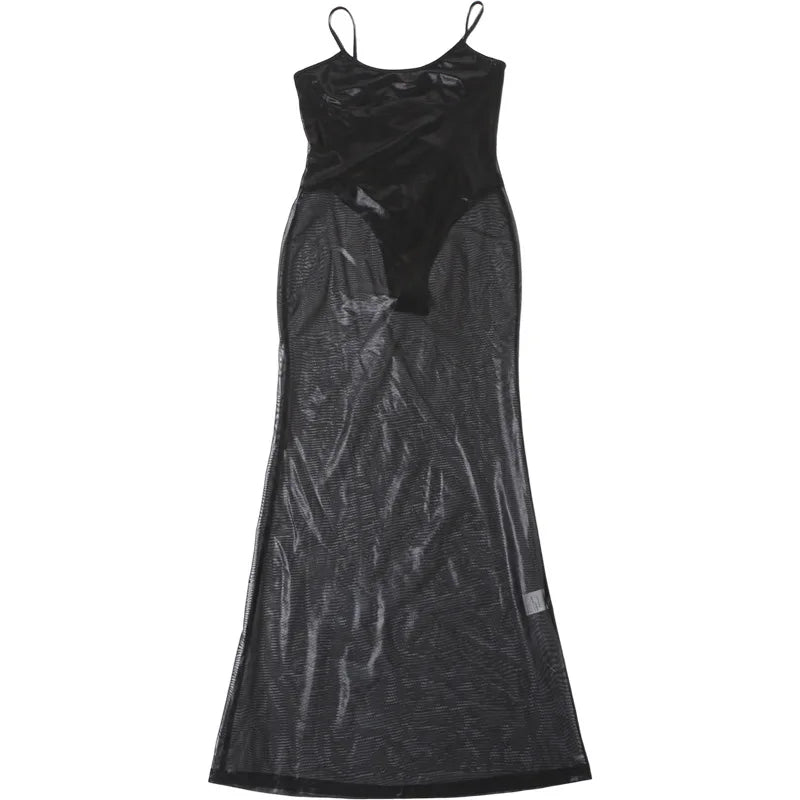 The Jaya Mesh Maxi Dress is a unique and stylish option for any special occasion. This bodysuit-style mesh dress provides a flattering fit and comfortable wear. perfect for dancing the night away. Its sleek mesh material adds a touch of elegance and sophistication. making it a must-have for any fashion-forward individual.