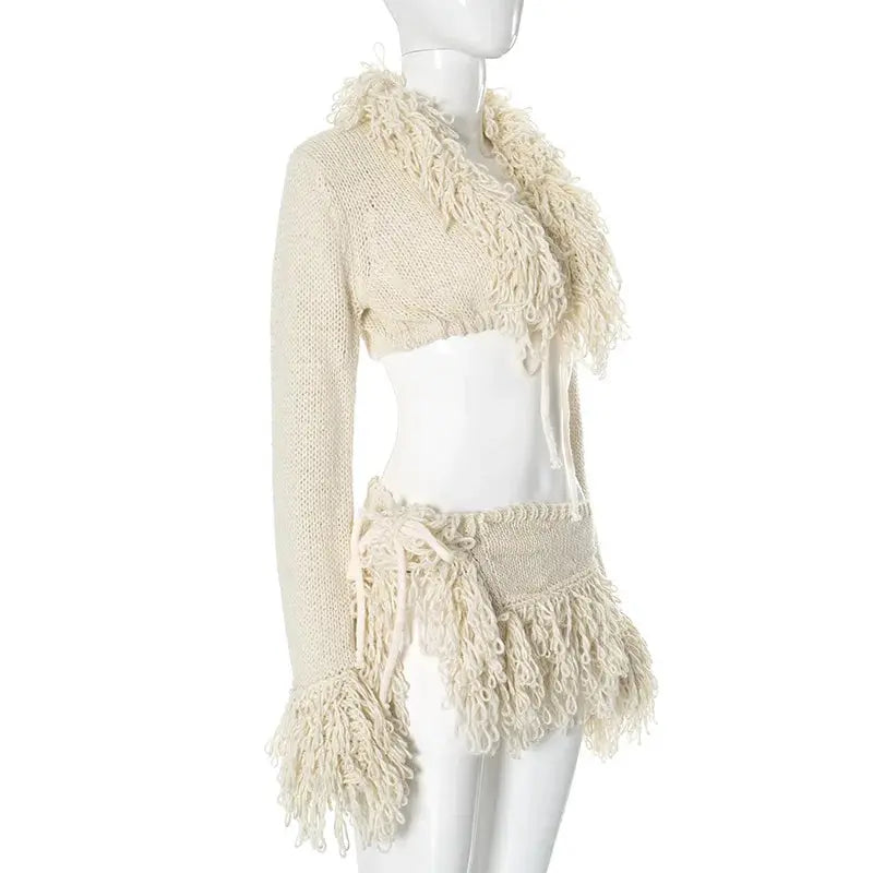 Expertly crafted and versatile. the Josie Knit Tassel Cardigan Skirt Set is a stylish addition to your wardrobe. Made with high-quality materials and attention to detail. this set offers a comfortable and flattering fit. Perfect for any occasion. the tassel accents add a touch of playful elegance to this must-have ensemble.