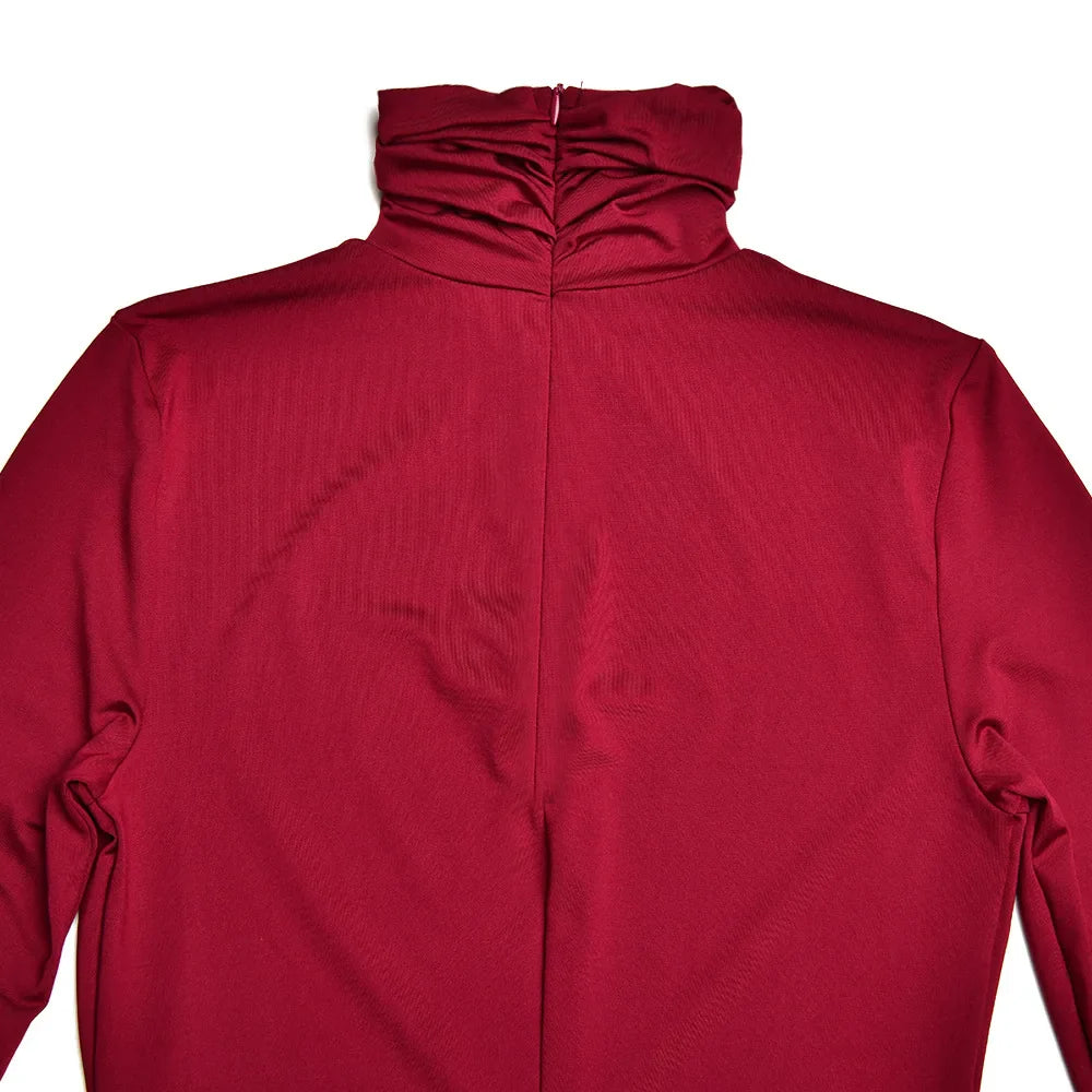 Get occasion ready with this Just Between Us Turtleneck Dress. Brought to you in a soft PU material with a high neckline. long sleeves and a draped design. we're obsessed. Style with heels and statement accessories for a look that will have all eyes on you.