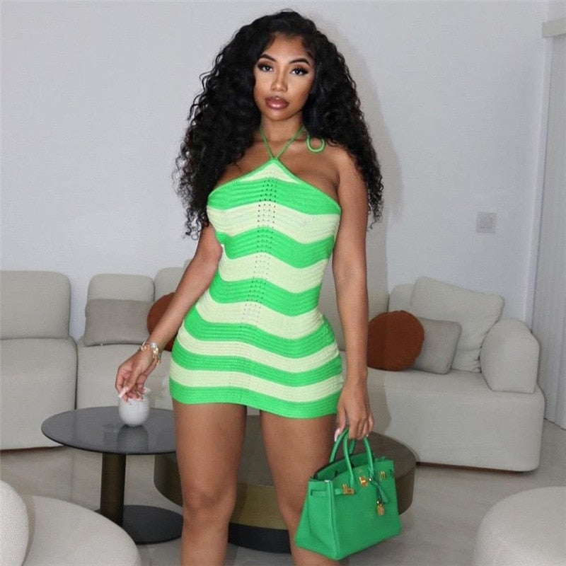 Look chic and stylish in this Kaya Stripe Knit Dress. Crafted from a lightweight and breathable fabric. it is designed to keep you feeling comfortable all day long. The modern striped pattern gives a timeless look. perfect for any occasion.