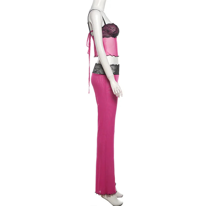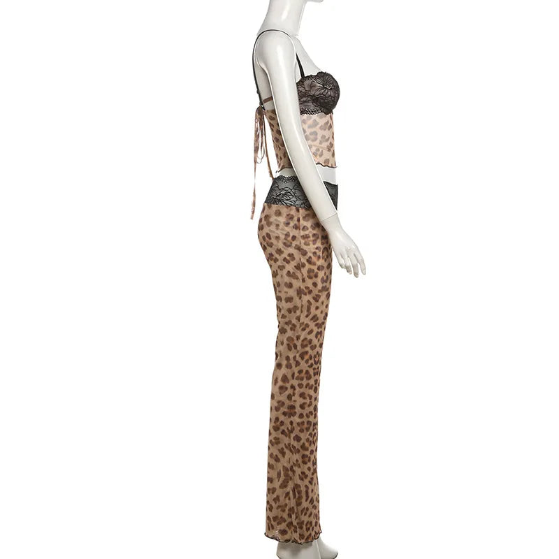 Look all kinds of glam this season in this Lace World Two Piece Set. Brought to you in a leopard or pink mesh lace material with a tank top with lace detailing. and matching flared fit pants. we know you will love it. This two piece set is the perfect piece for any special occasion. Pair with cute heels and accessories for a statement finish that will steal all the stares.
