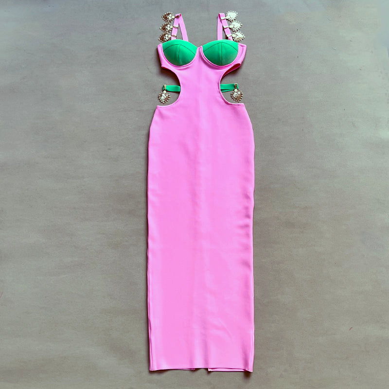 The Lauren Bodycon Bandage Maxi Dress is the perfect piece to complete any formal look. Crafted with a blend of Rayon. Nylon & Spandex. it hugs your figure with a trendy bandage style fit. The high-quality fabric ensures a breathable. comfortable. and flattering drape.