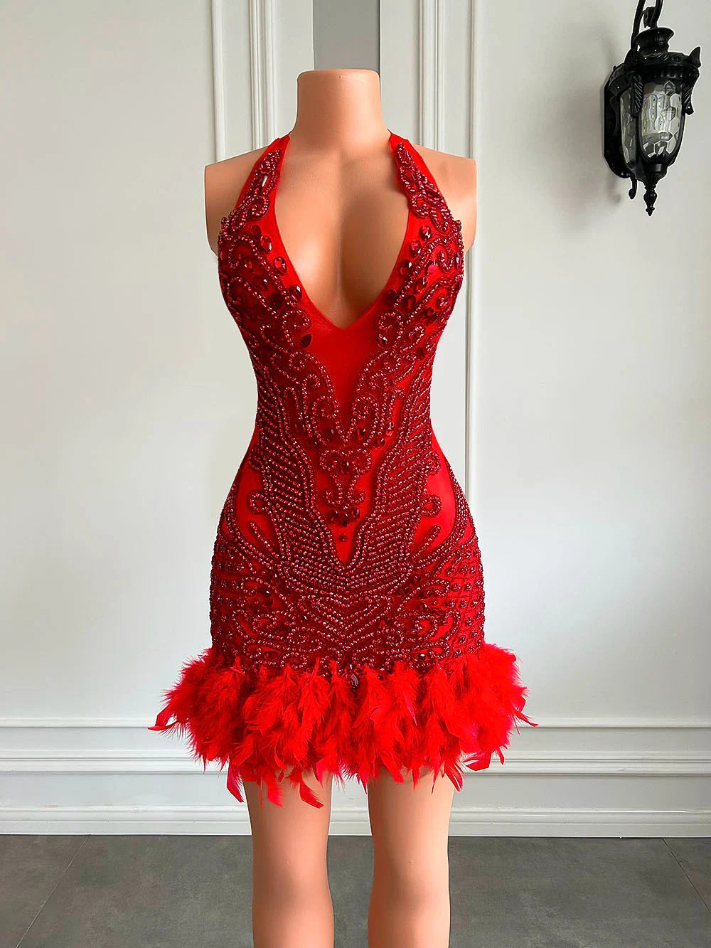 Decoration: Beading. CRYSTAL. Feathers. Sequined