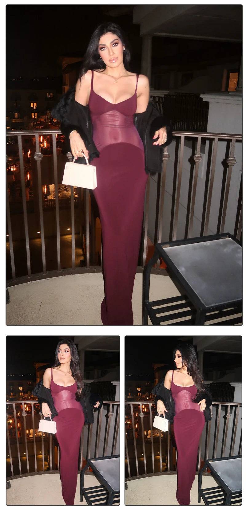 Introducing the Lola Bodycon Maxi Dress. a luxurious and sophisticated addition to your wardrobe. Featuring elegant mesh details in the stomach area. this dress adds a touch of glamour to any occasion. Elevate your style with this expertly crafted dress.