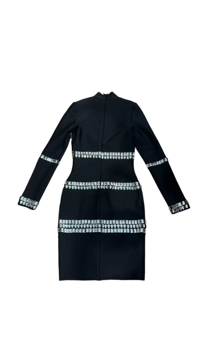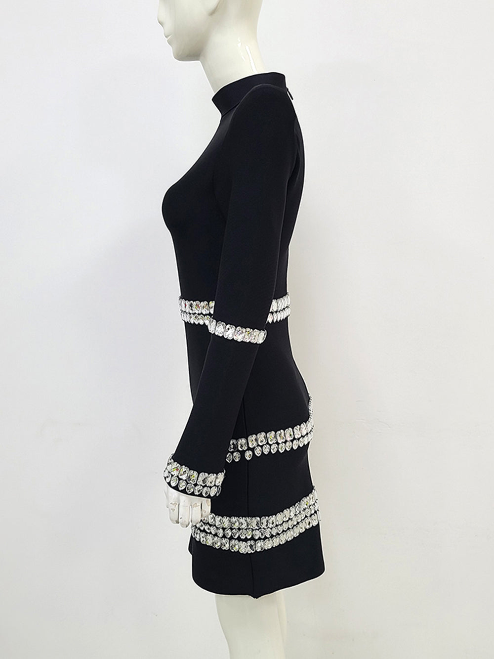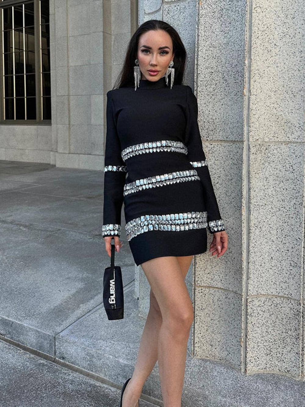 Step out in style with the Lorna Crystal Bandage Mini Dress. This must-have dress exudes luxury and is crafted with high-quality materials for a flawless fit. Perfect for any occasion. you'll feel confident and chic in this stunning dress. Upgrade your wardrobe today with the Lorna Crystal Bandage Mini Dress.