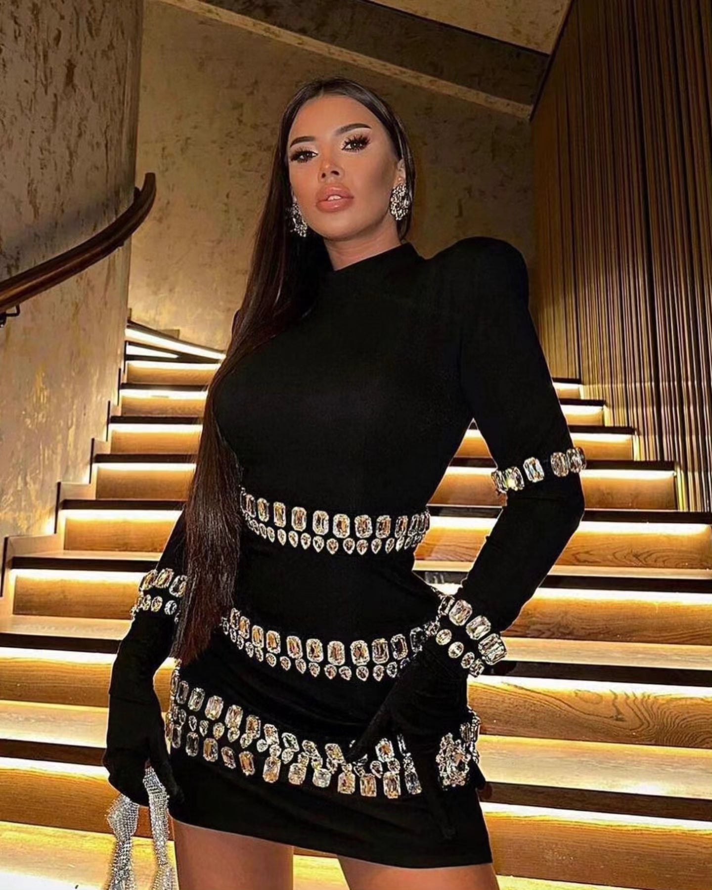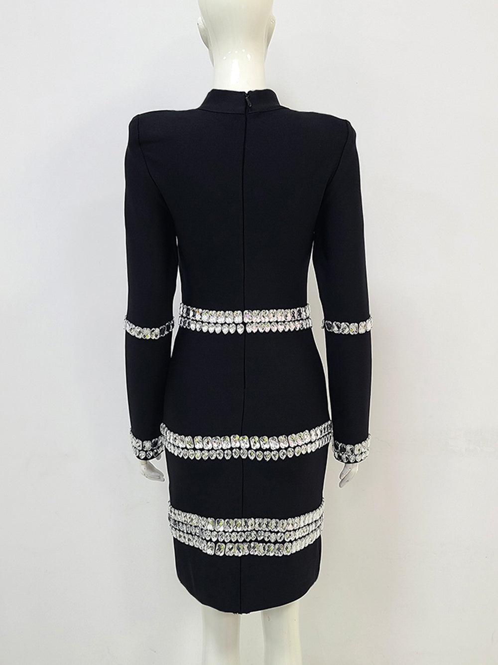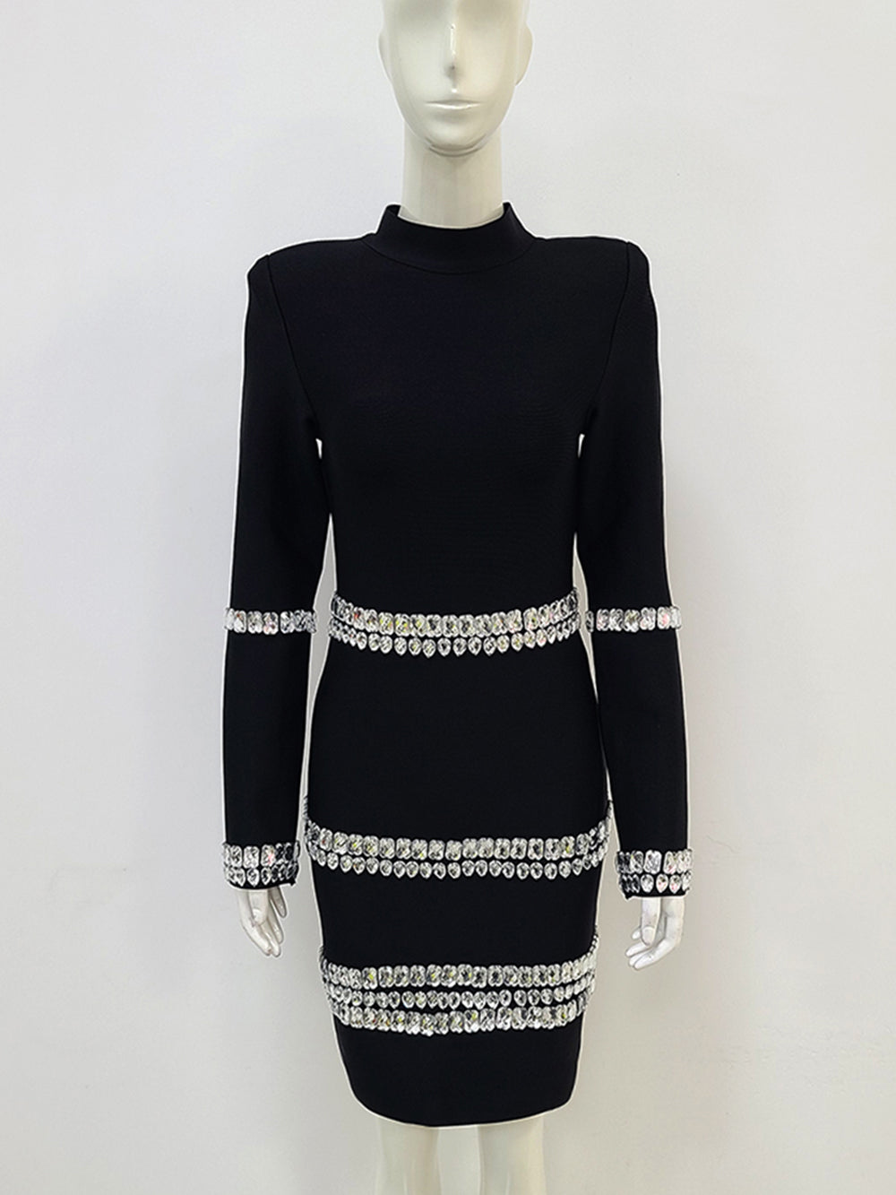 Step out in style with the Lorna Crystal Bandage Mini Dress. This must-have dress exudes luxury and is crafted with high-quality materials for a flawless fit. Perfect for any occasion. you'll feel confident and chic in this stunning dress. Upgrade your wardrobe today with the Lorna Crystal Bandage Mini Dress.