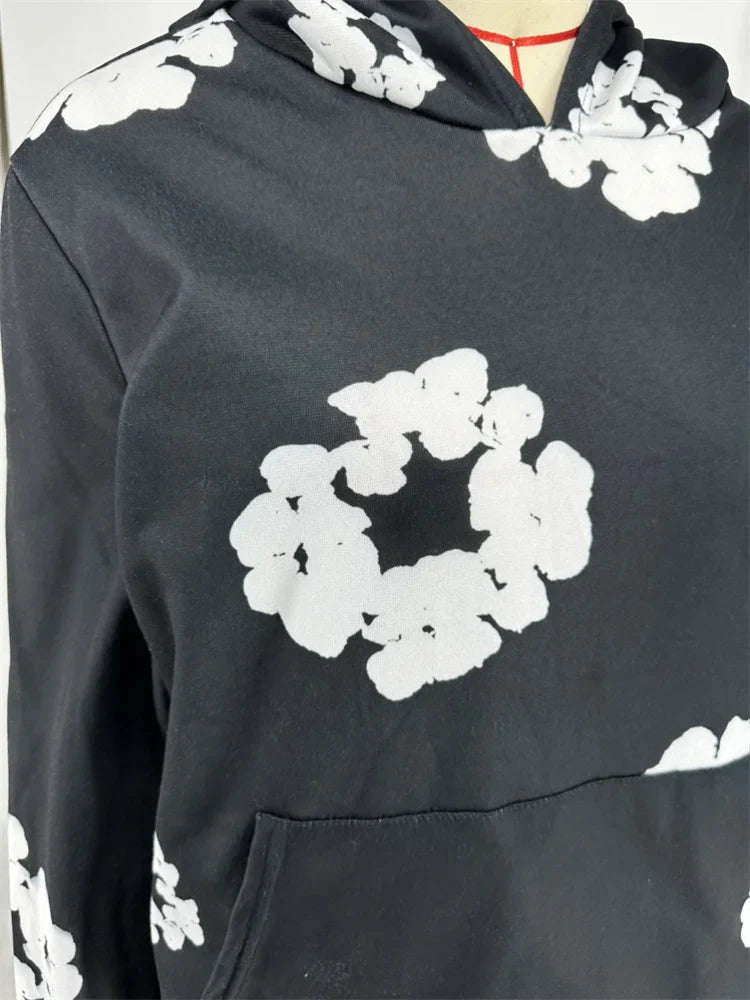 Update your relaxed days wardrobe with this Love Me Floral Two Piece Set. Brought to you in a black cotton material with an all over flower design hoodie and matching jogger pants. what's not to love? Style this two piece set with fresh kicks. and your favorite accessories for a cozy but chic look.