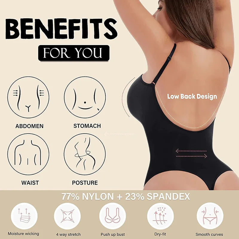 Perfect for open back dresses and tops. this bodysuit provides support and smooths out any lumps or bumps for a flawless look. Pair it with pants or skirts for a seamless and confident outfit.