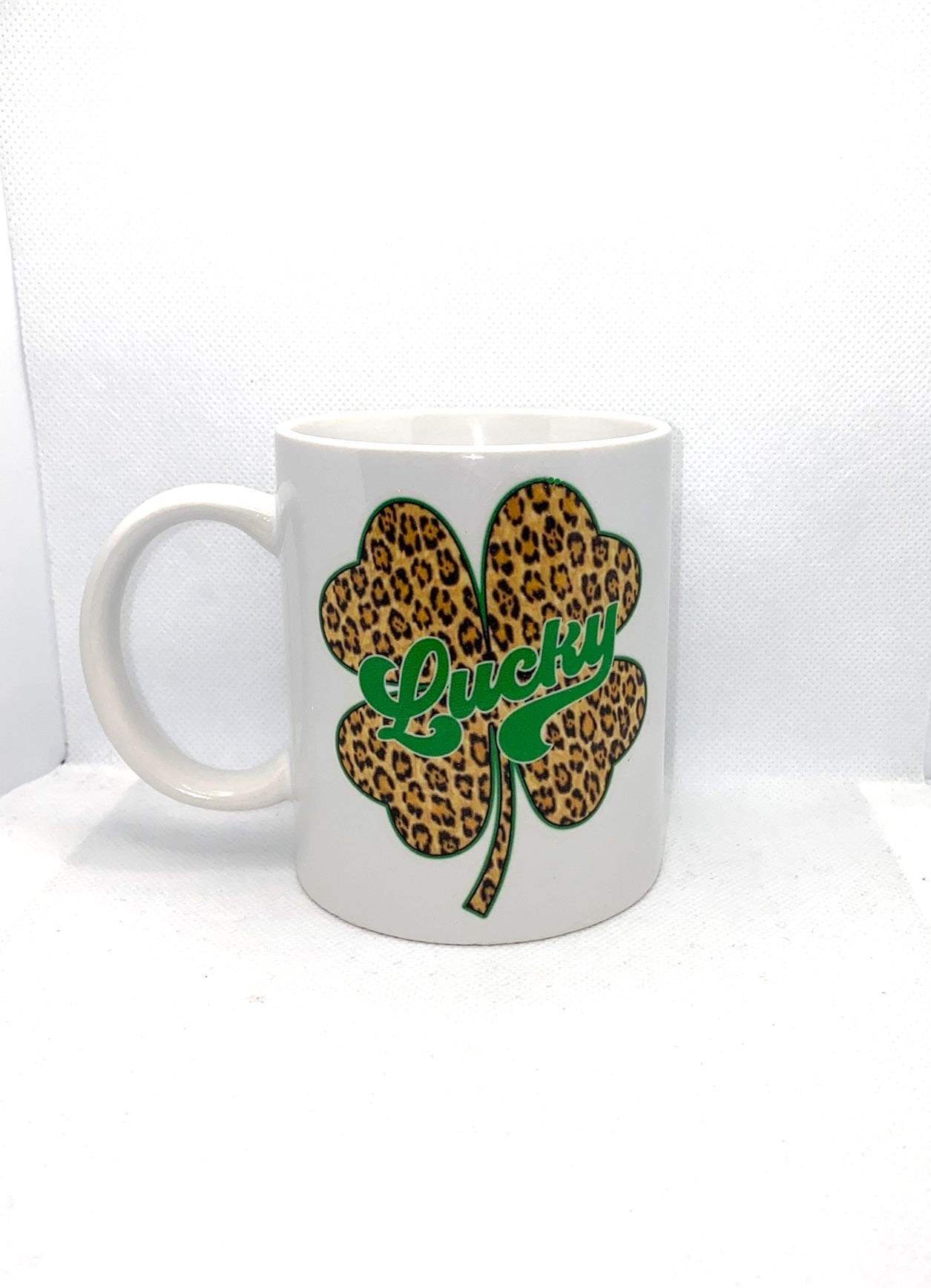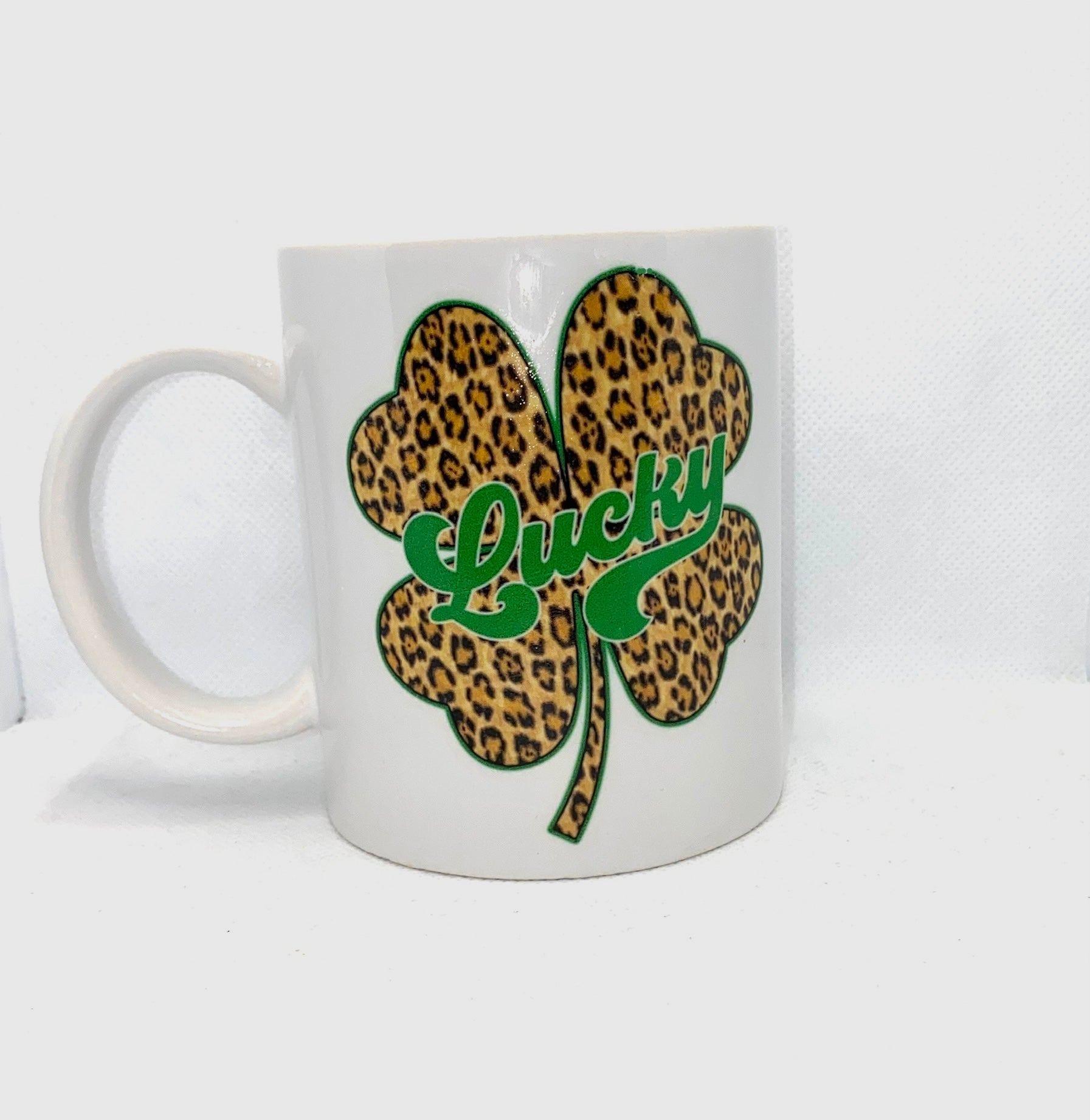 Wake up in theme this St. Patrick's Day with our Lucky Charm Mug. Grab your favorite beverage in this all white coffee mug with a stylish four leaf clover on both sides.
