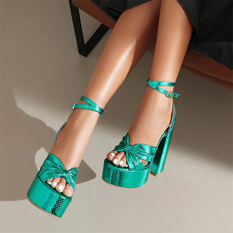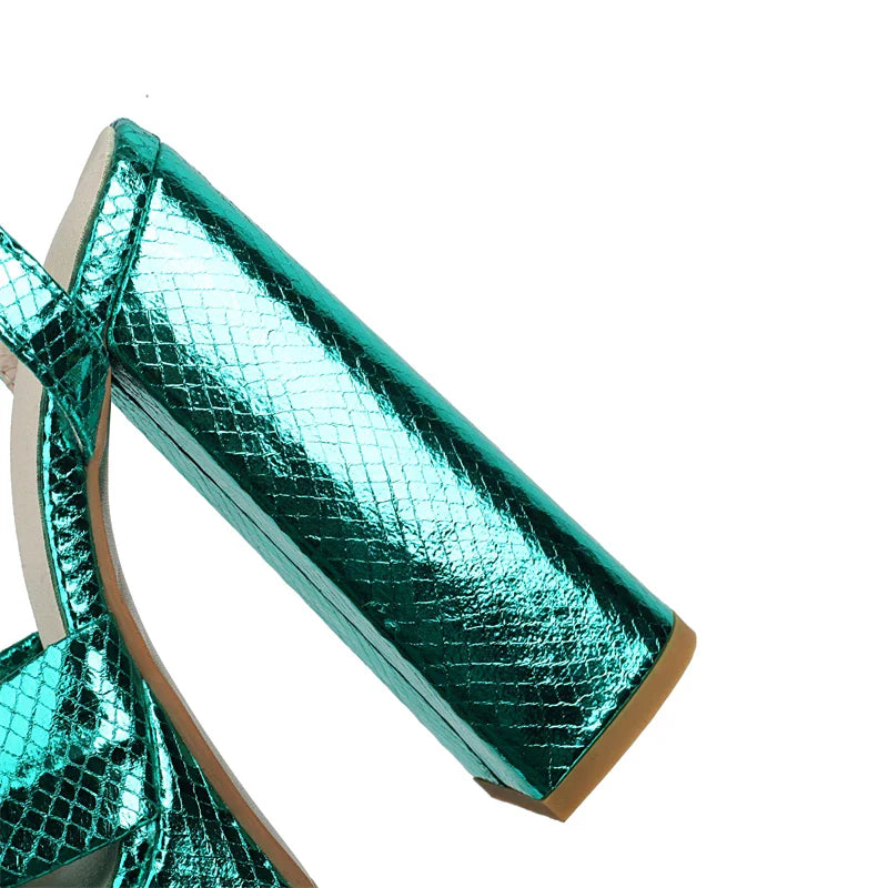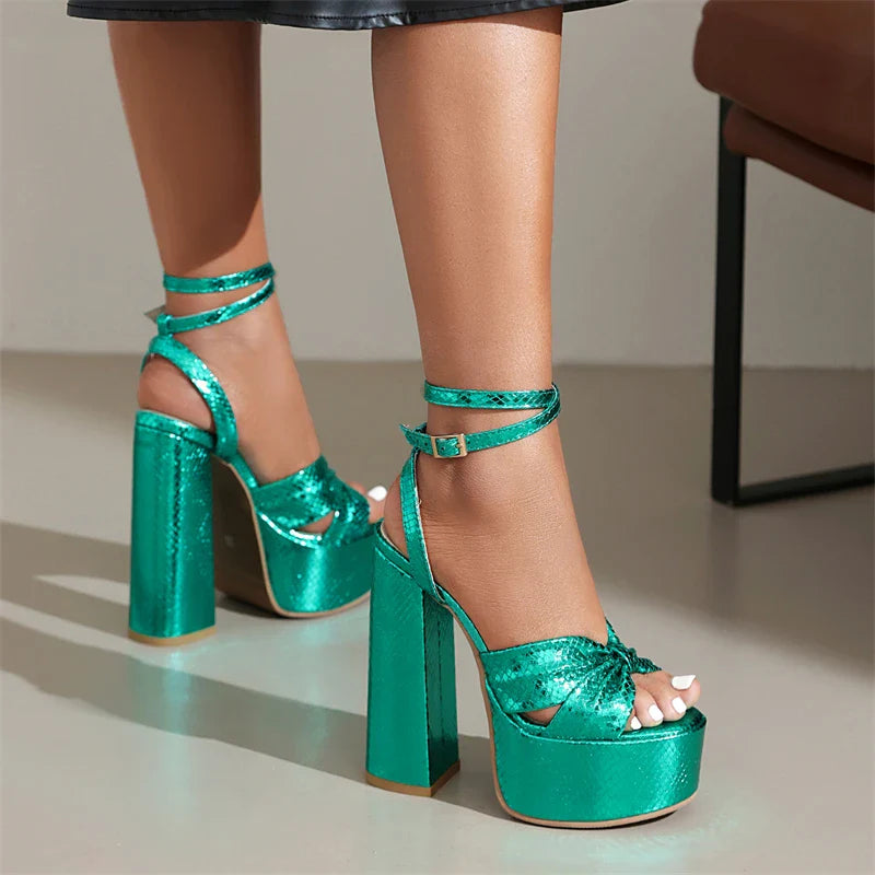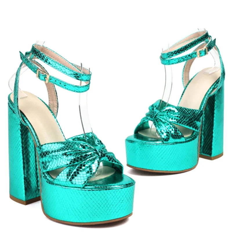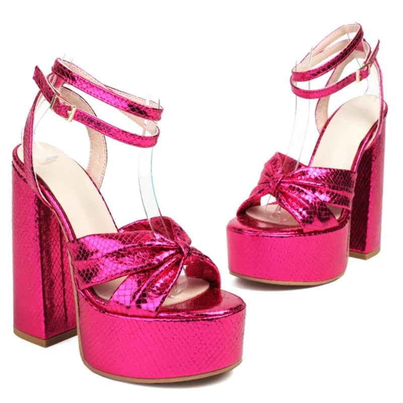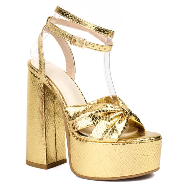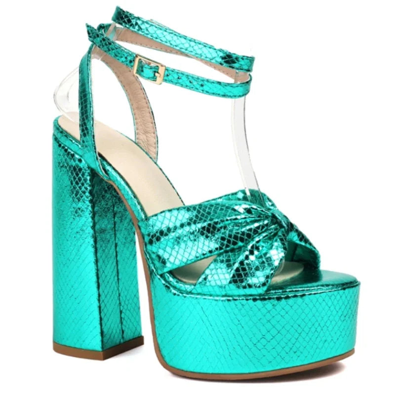 Add a pop of color to your weekend look with these Lucky Star Platform Heels. Brought to you in a sparkling PU material with a platform design. ankle straps and high block heels. what more could you ask for? Style these heeled sandals with your weekend outfit to take your look to a whole new level. we are obsessed!