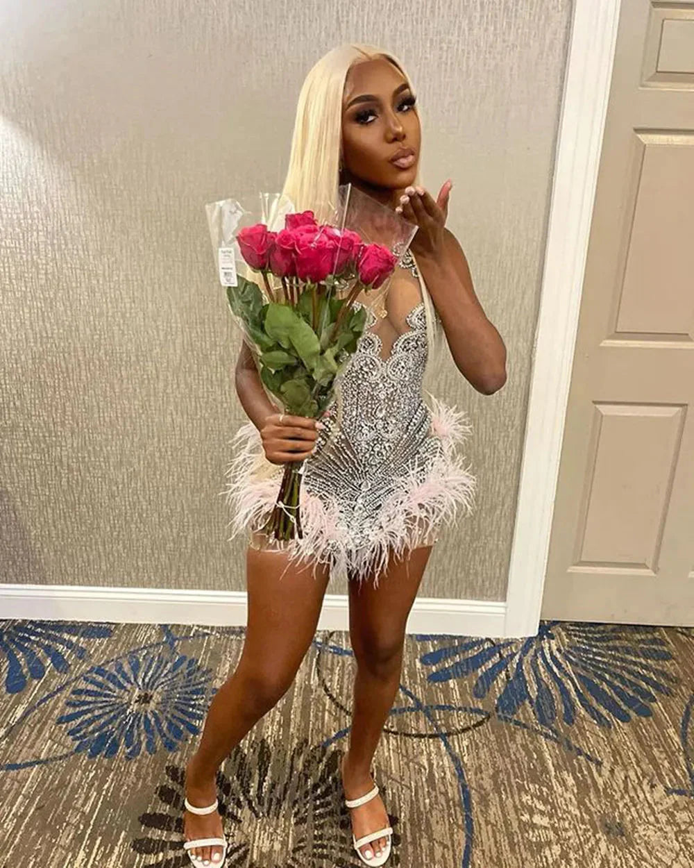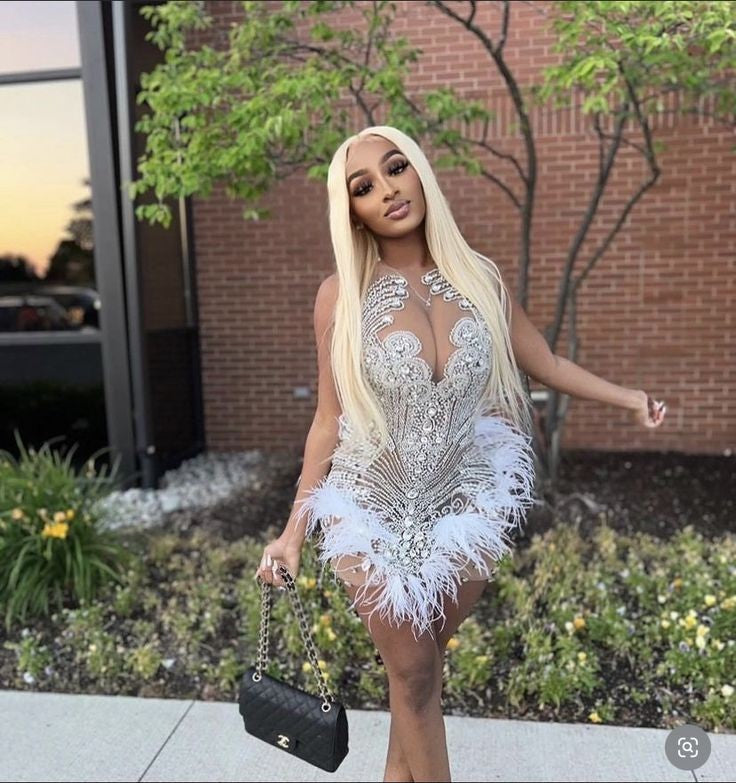 - please treat this dress gently since it's adorned with feathers; the occasional shedding of a single feather is to be expected.