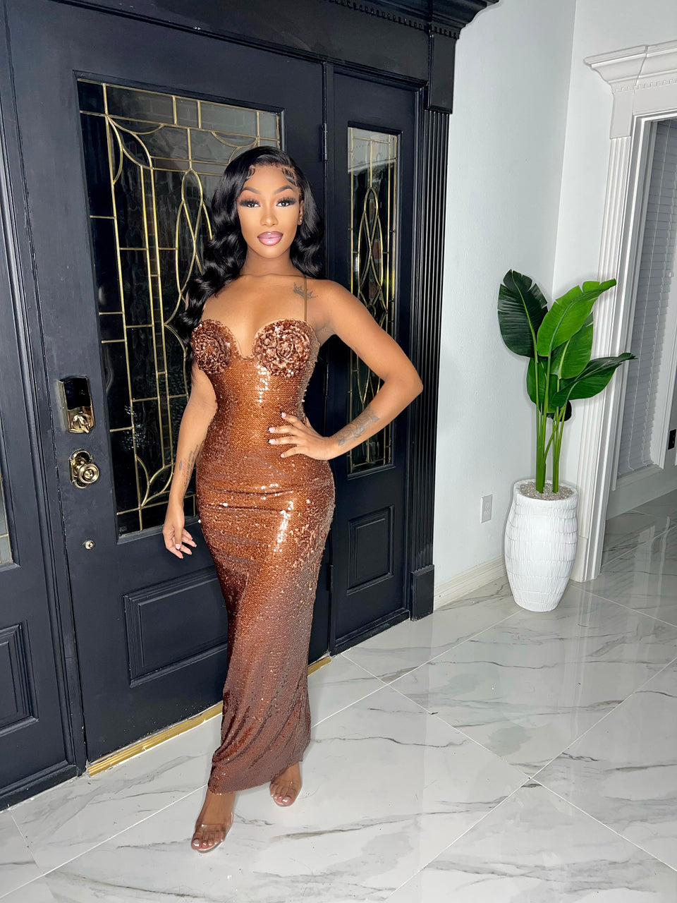 Elevate your style with our Luxury Sequins Bodycon Maxi Dress. Featuring a perfect balance of class and sophistication. this dress will make you stand out at any event. Made with luxurious sequins and a flattering bodycon silhouette. you'll feel confident and elegant all night long. Upgrade your wardrobe with this timeless piece.