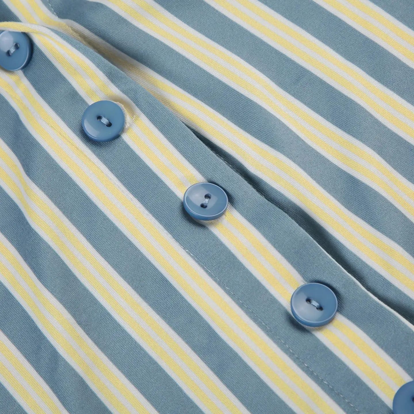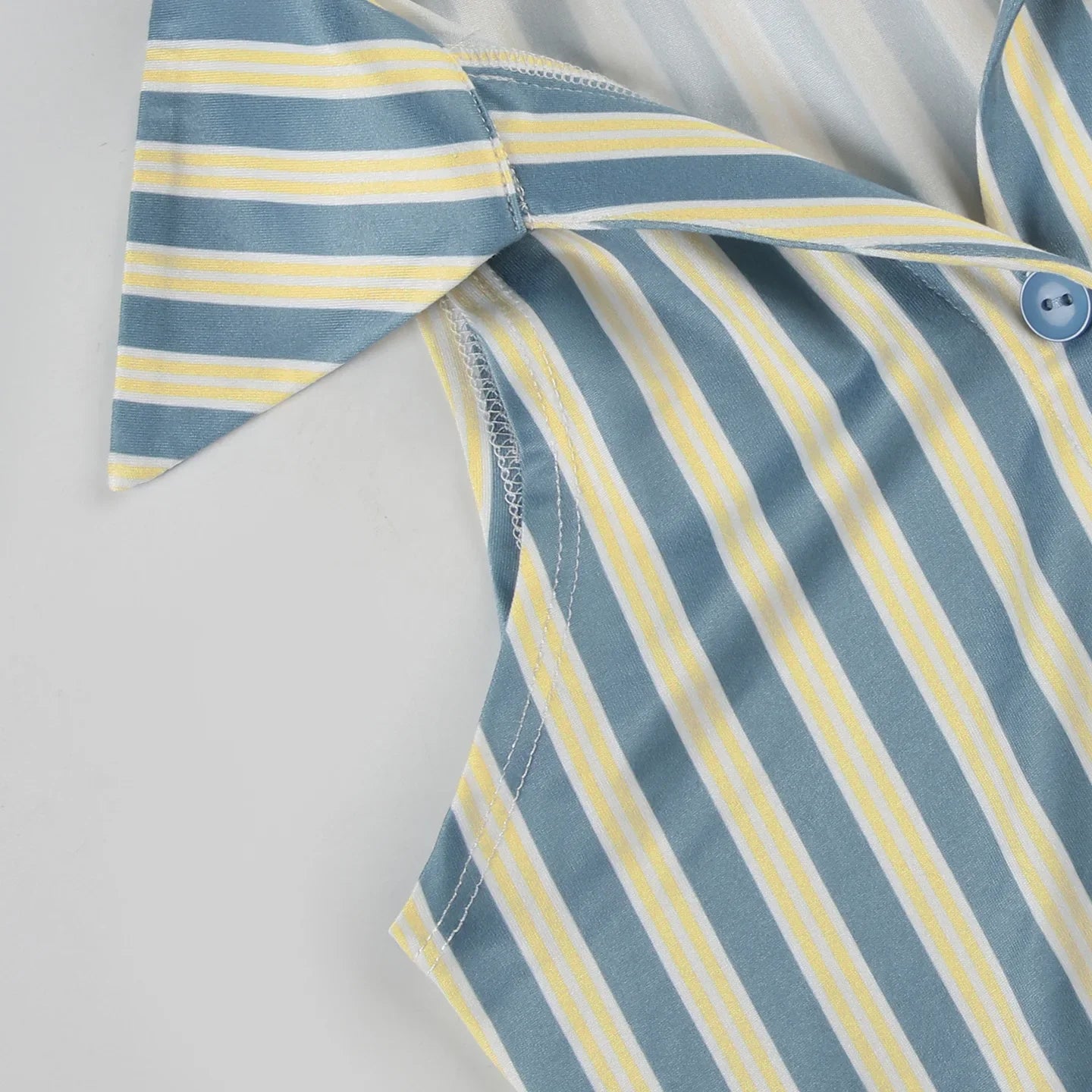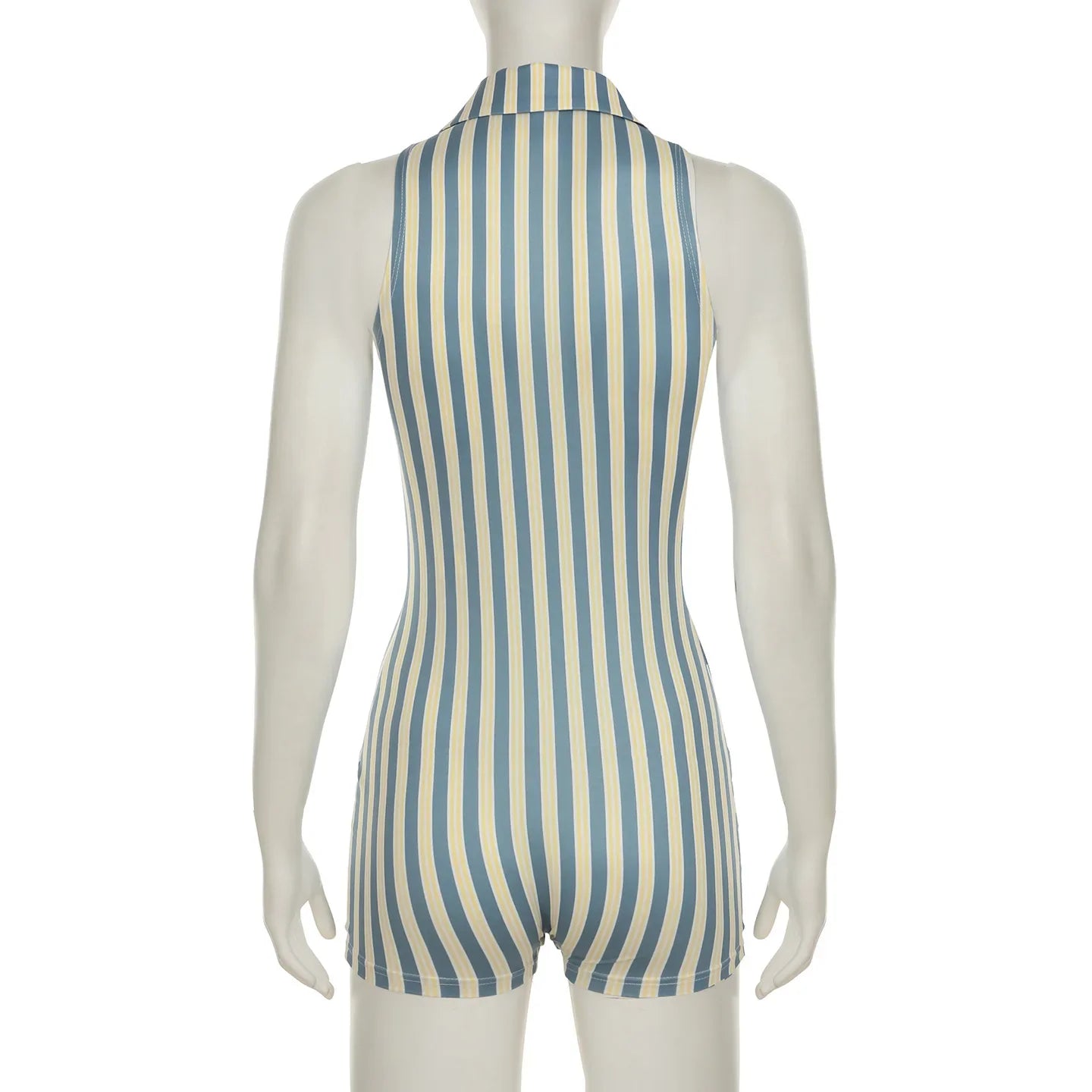 Time to meet your new favorite outfit with this Madrid Striped One Piece Set. Crafted from blue striped material with pinstripe patterning. this romper features a halter neckline with button fastenings. Perfect for your Summer days out. simply style with sleek gold earrings and classic kitten heels.