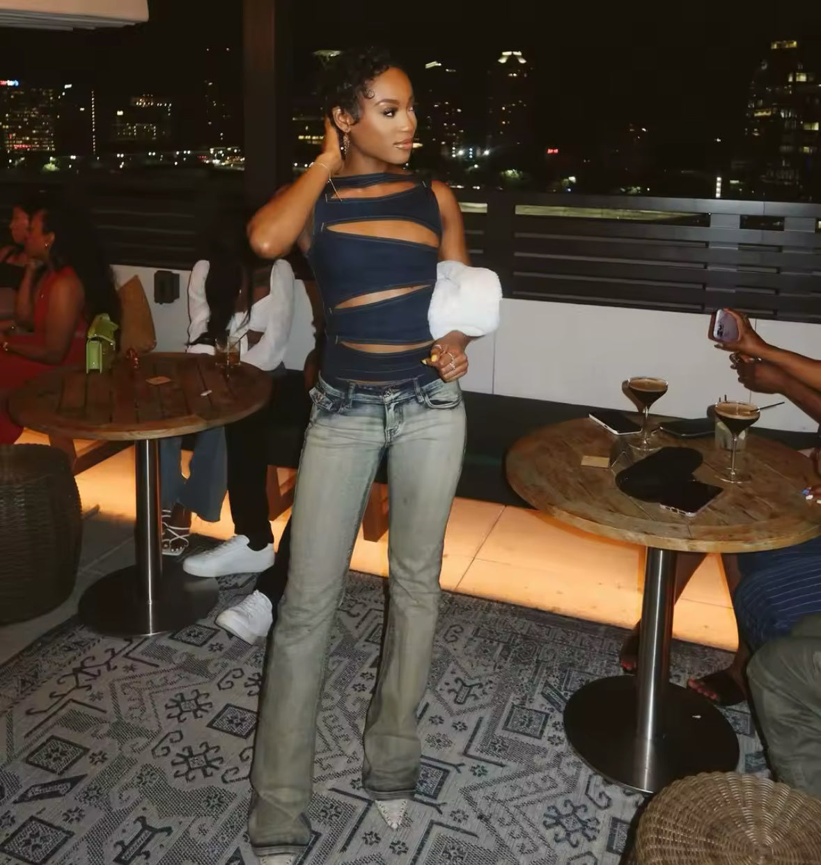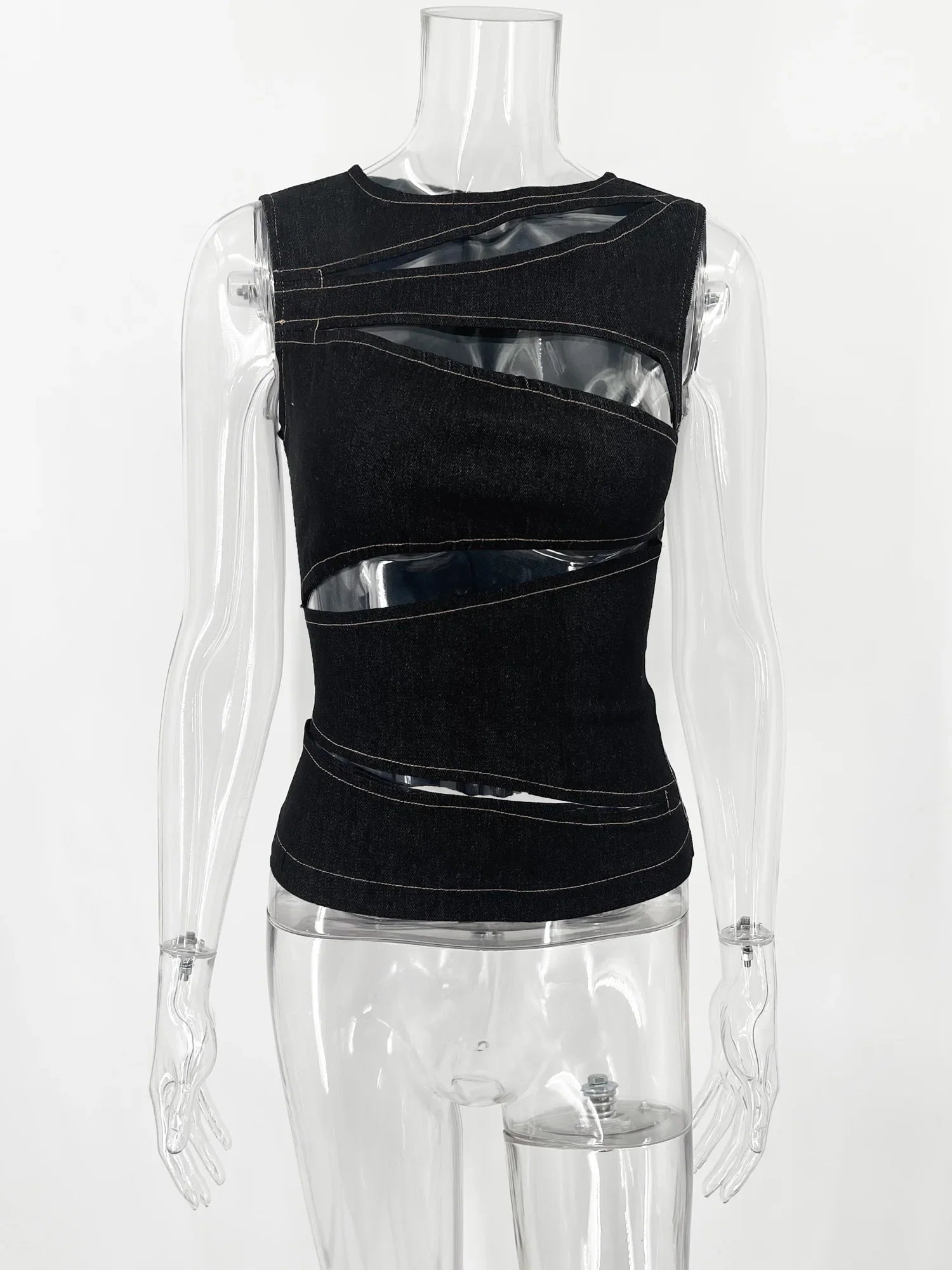 Hit refresh on your wardrobe collection with this must-have Main One Denim Sleeveless Top. Featuring a denim material with a cut-out front design. we're in love. Wear with denim jeans. accessories and heels for a look we can't get enough of.