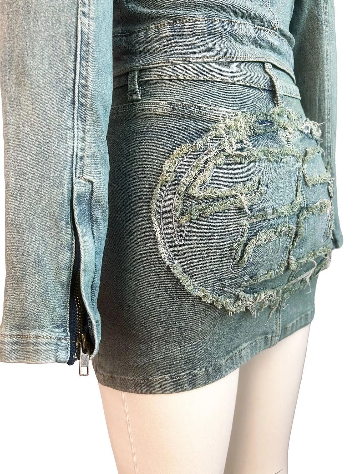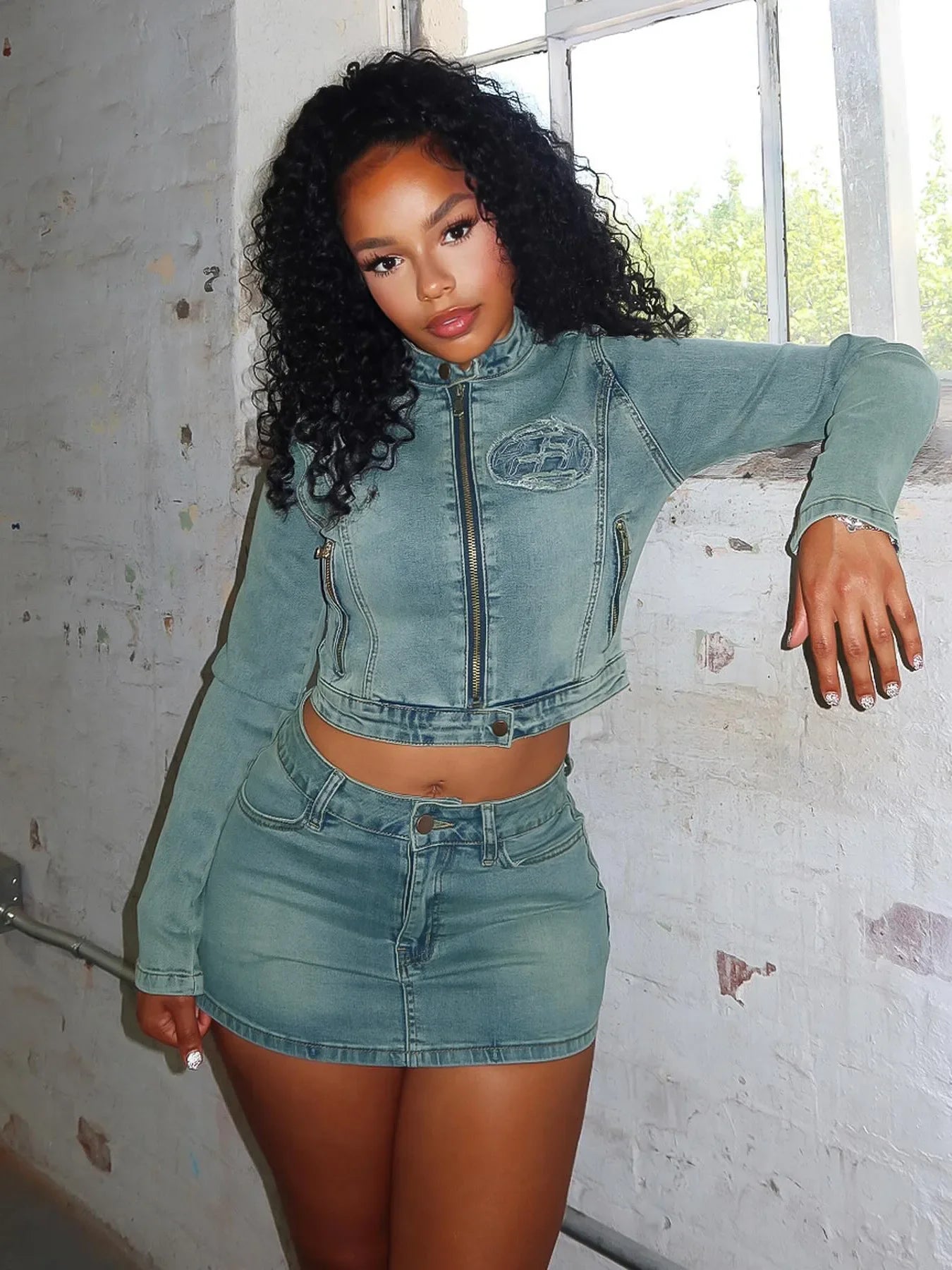 We're obsessed with this Make It Happen Denim Two Piece Set. Its vintage wash denim stretch material is so on trend right now and its distressed design adds that extra edge to your look. No matter what your plans are this weekend. this two piece set is sure to gain all the compliments and catch everyone's attention. Team with heels and simple accessories for a fit worthy of a place on the grid.