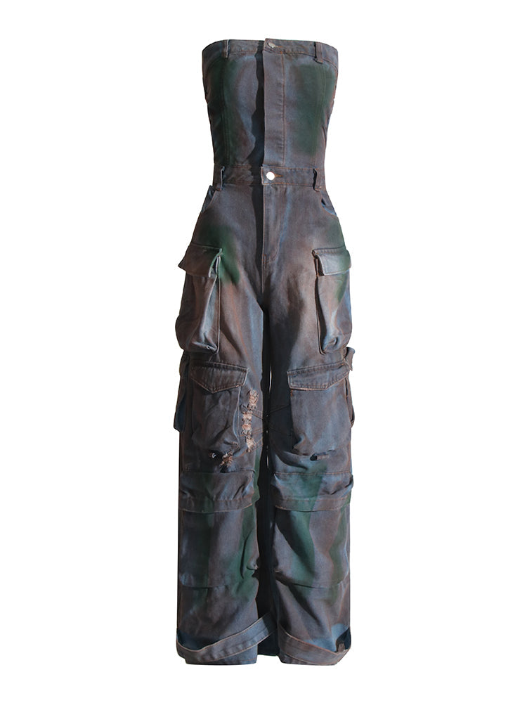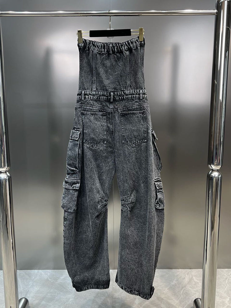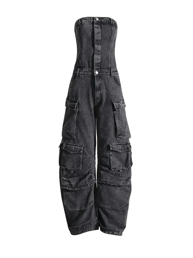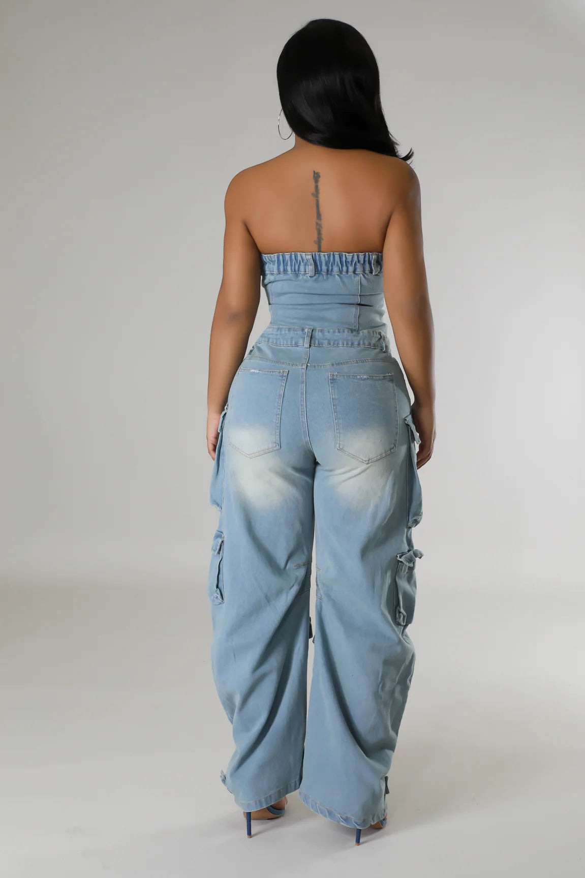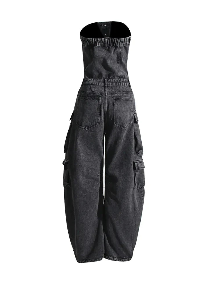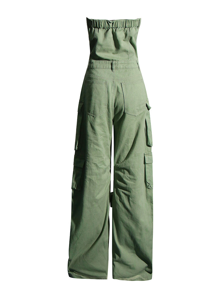 Look stylish and make a statement in the Malika Cargo Jumpsuit. This striking. denim jumpsuit provides you with a unique and innovative look thanks to the strapless design. multiple pockets. and wide leg. Feel the quality in this ultra-comfortable jumpsuit and make it an essential part of your wardrobe.