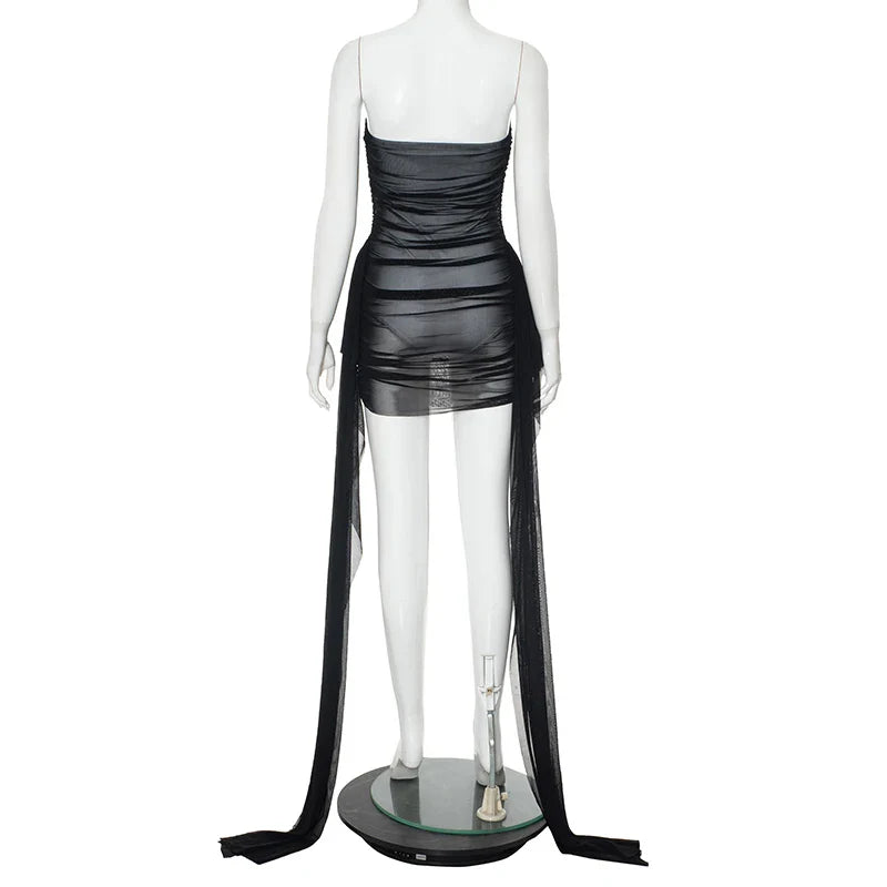 Laddies this Meet You After Mesh Mini Dress is sure to be a staple piece in your weekend wardrobe! A black mesh dress is a style you can reach for season after season. Featuring a black mesh material with ruched detailing. a white underneath attached bodysuit. and side tassel design in a mini dress style - we are loving this super chic fit. A ruched style is a must-have this season so simply team with statement earrings. heels. and a simple bag for an insta-worthy look.