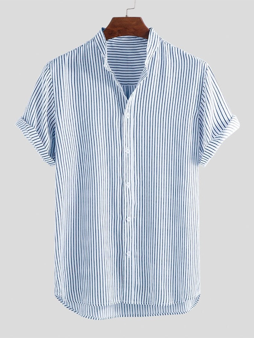 The relaxed fit provides you with a comfortable and stylish look that is perfect for any occasion. Whether you're exploring the town or simply enjoying a day at the beach. the Stand Collar Striped Shirt will keep you cool and comfortable all day long.