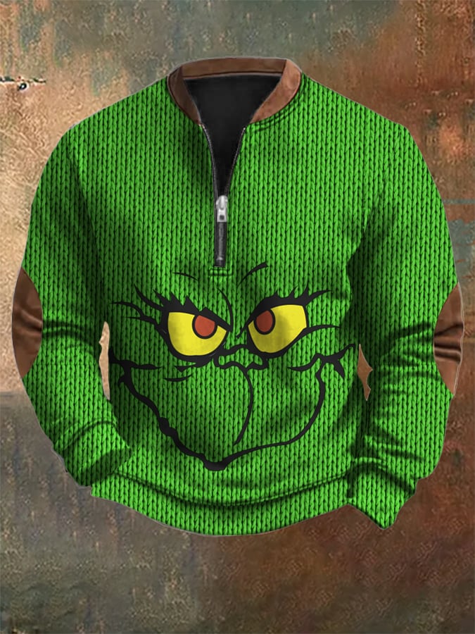 Vintage Knitted Printed Zipper Collar Christmas Sweatshirt