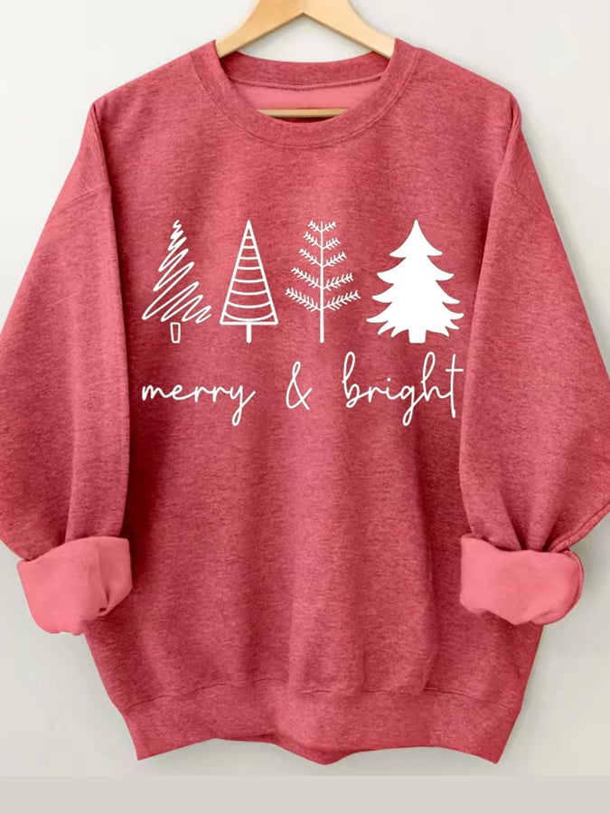 Merry And Bright Christmas Printed Long Sleeve Sweatshirt