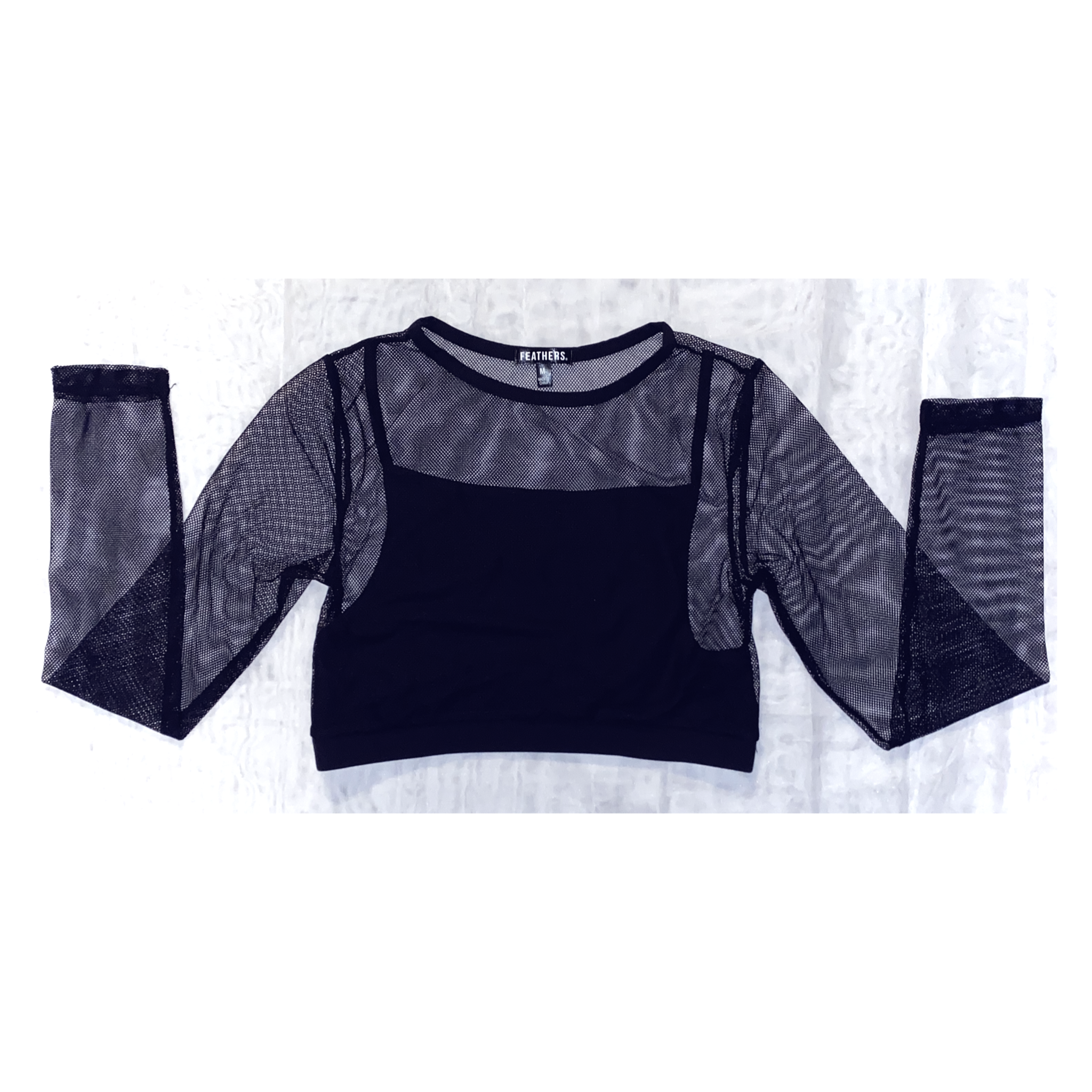 Mesh top with black tank top attached underneath.